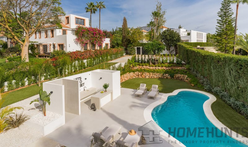 Outdoor Oasis: Indulge in the pleasures of a large outdoor pool accompanied by a jacuzzi and a chic chillout area. The meticulously designed outdoor space extends to an inviting outdoor kitchen and barbecue—a perfect setting for entertaining guests or enjoying intimate family moments.