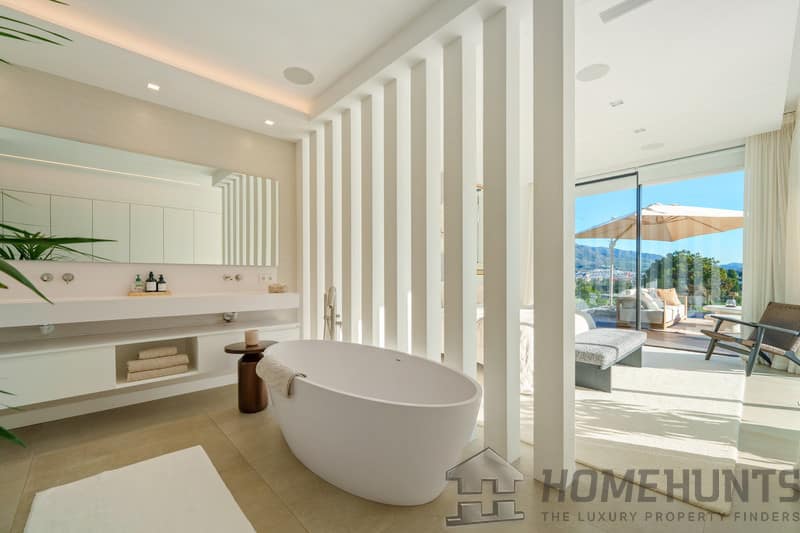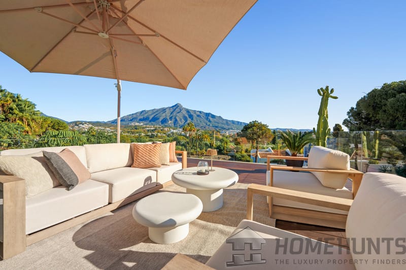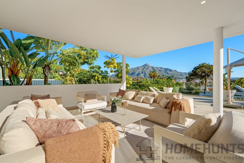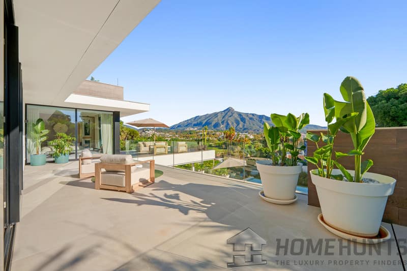 A a stunning modern villa in the coveted Golf Valley of Nueva Andalucía. With picturesque views towards La Concha, this property enjoys an Eastern Orientation allowing for plenty of sunlight throughout the day.