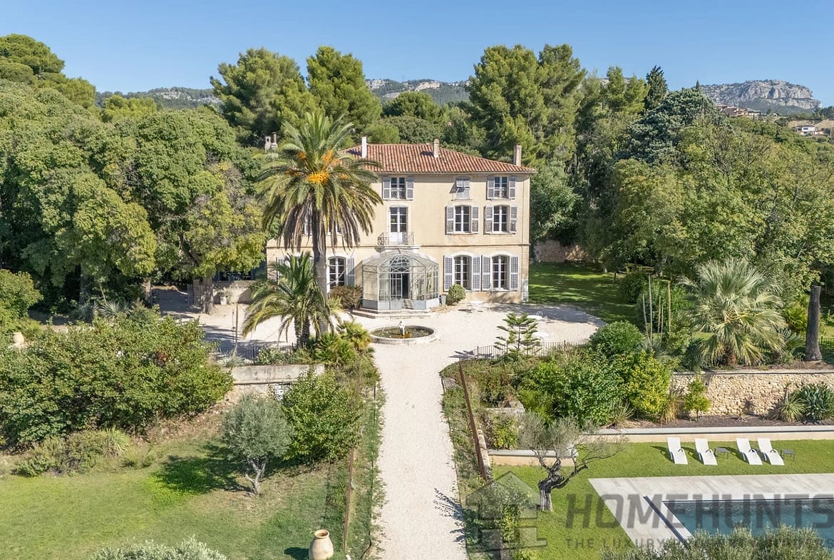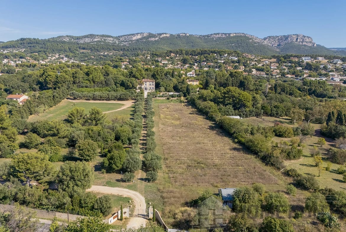 Just 15 minutes from the center of Toulon, the beaches, and the TGV train station, this exceptional property welcomes you to a 4.5-hectare green setting, nestled among olive groves, pine forests, shaded paths, and Provencal terraces.