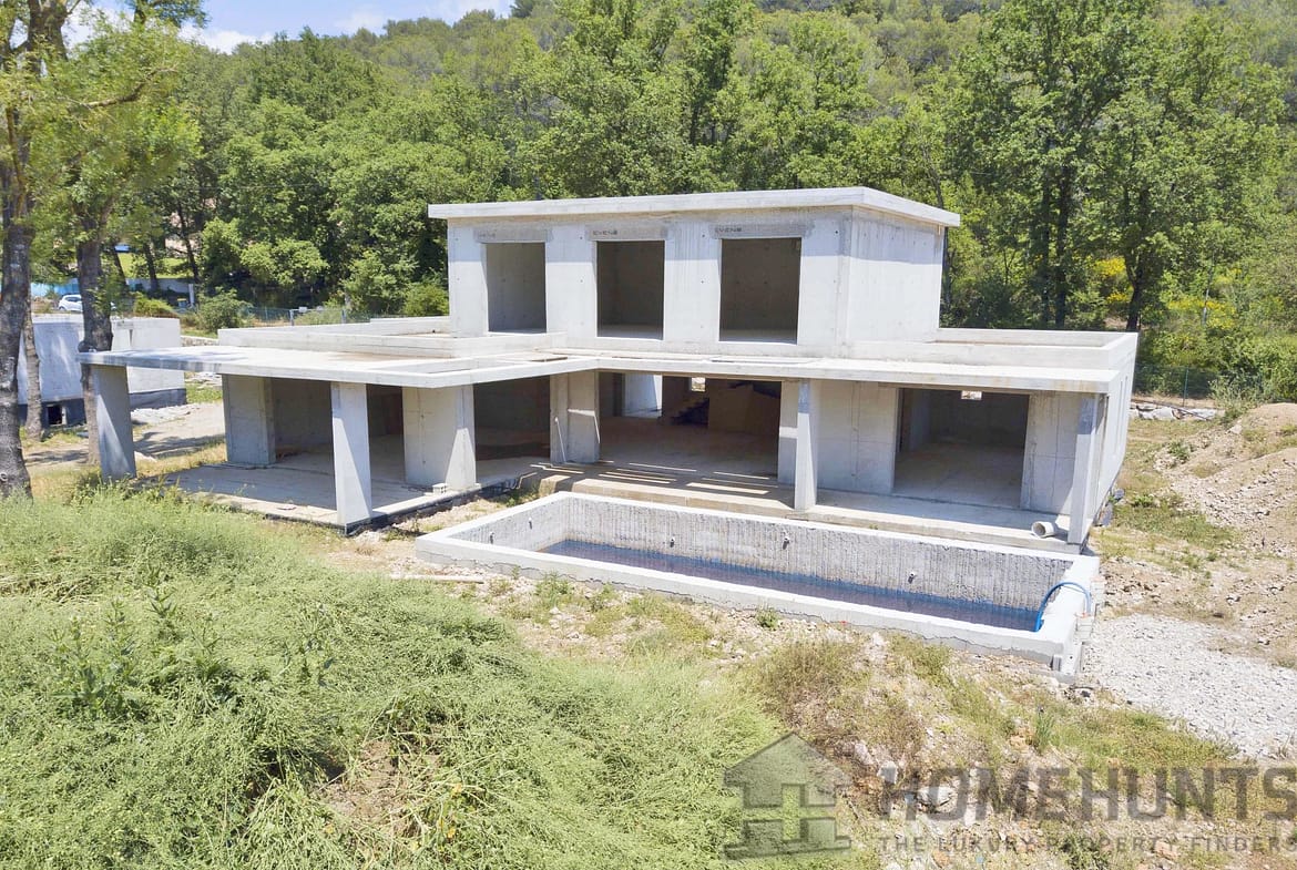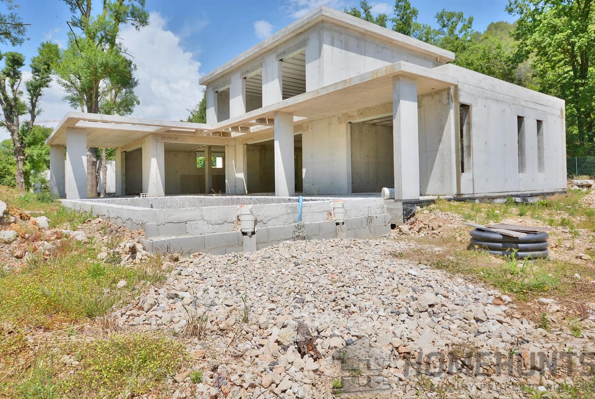 This new contemporary, south-facing house of approximately 200 m2 is located in Opio. On the ground floor, you will find a beautiful living room overlooking the terrace, one master suite with its own bathroom and dressing room, and a bright kitchen built with high quality materials.