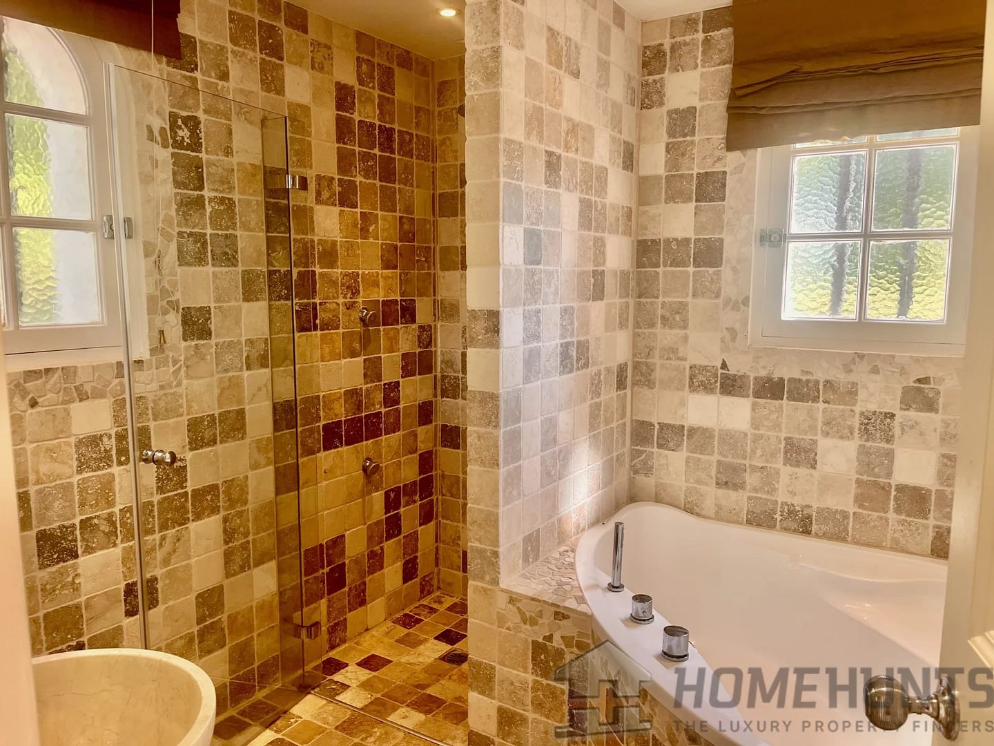 There are four air-conditioned bedrooms in total, including three on the garden level with direct outdoor access. Two bathrooms, a laundry room, and guest toilets complete this floor. Upstairs, the fourth bedroom enjoys its own en-suite shower room and a delightful Tropezian terrace with open views.