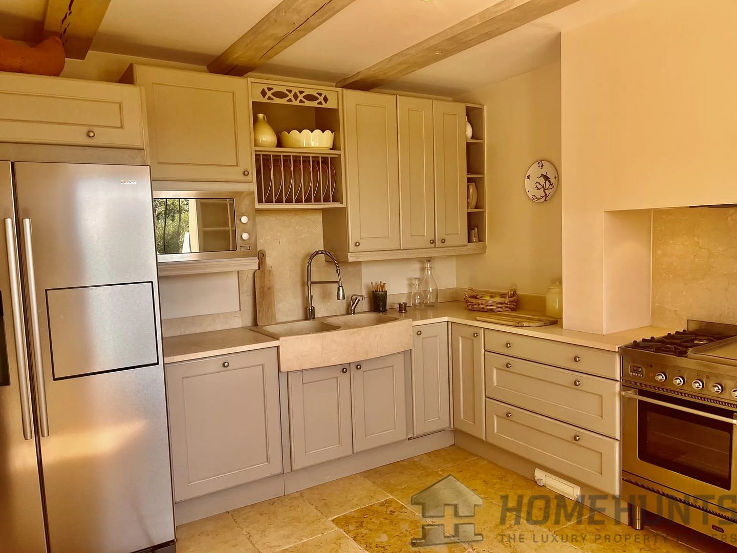 Set on a flat, beautifully maintained plot of 1,516 m2 with total privacy, the grounds feature a manicured lawn, mature olive trees, and an expansive 80 m2 sun-drenched terrace. The swimming pool is seamlessly integrated into the landscape and accompanied by a stylish outdoor lounge area – ideal for relaxing while enjoying stunning views over the surrounding hills and olive groves.