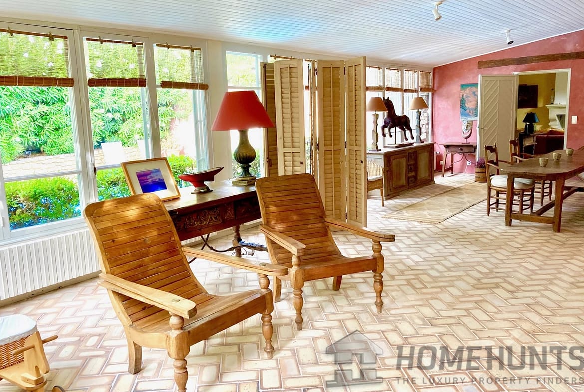 Garden level: a spacious dining area, a lounge with fireplace, a lounge/library with fireplace, an equipped eat-in kitchen , 2 bedrooms with dressing room and en-suite bathroom (sink, shower and WC), a bathroom water (basin, shower and WC).