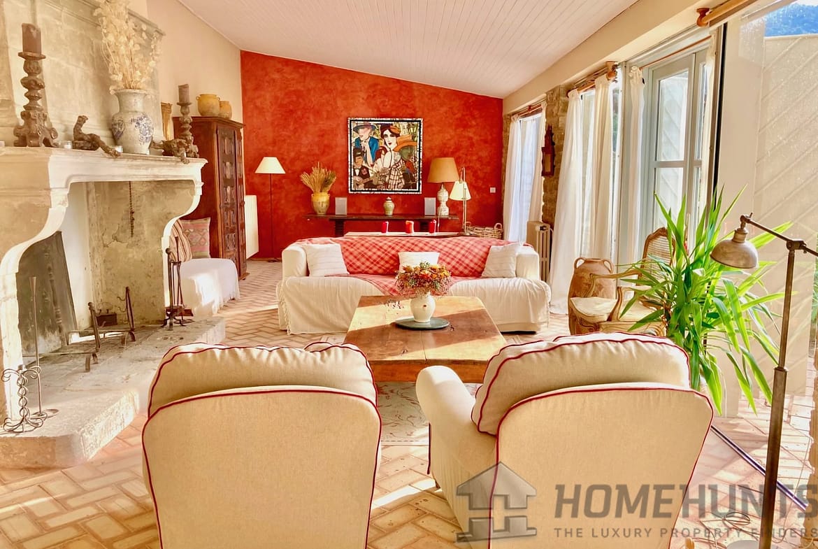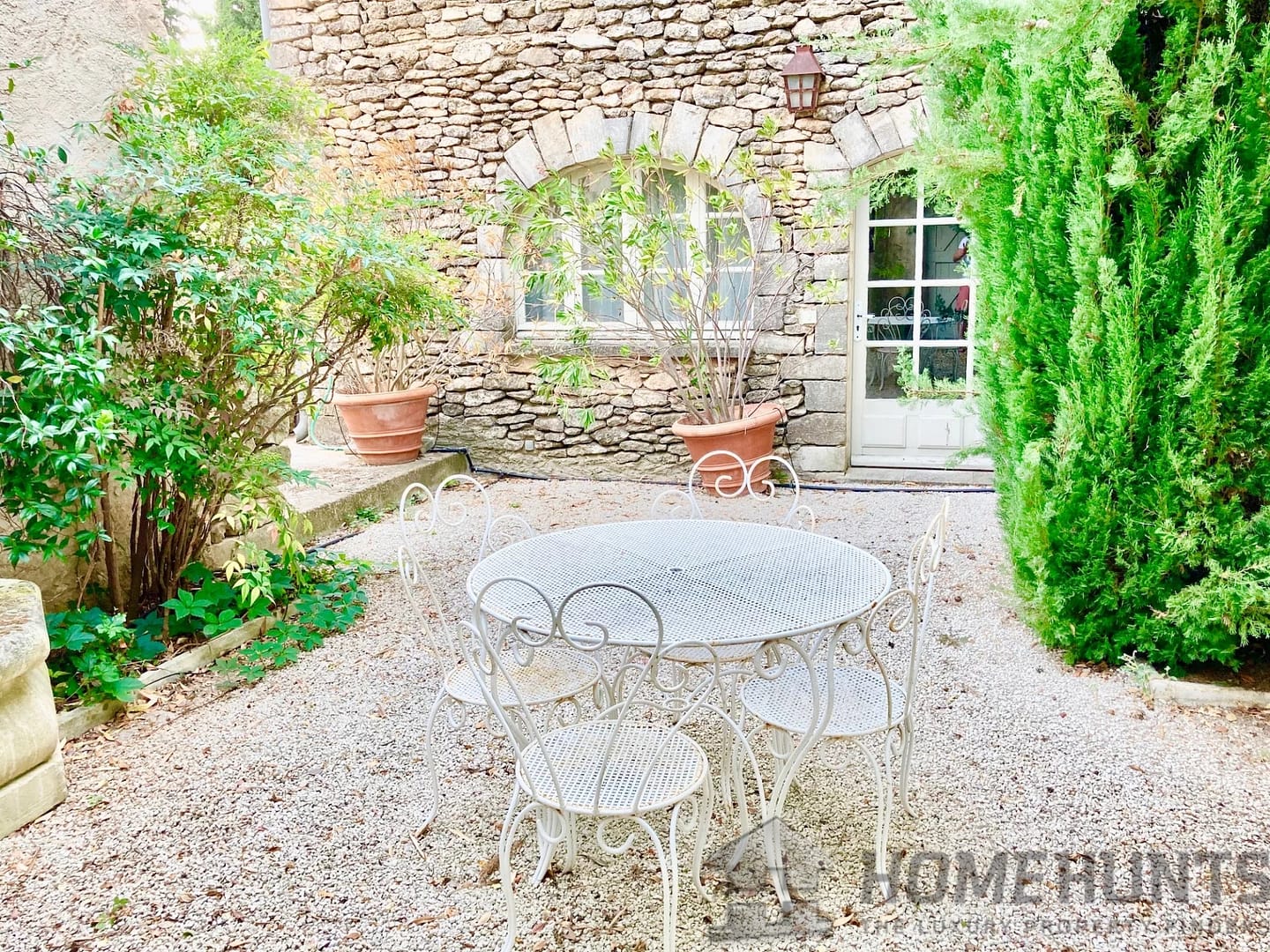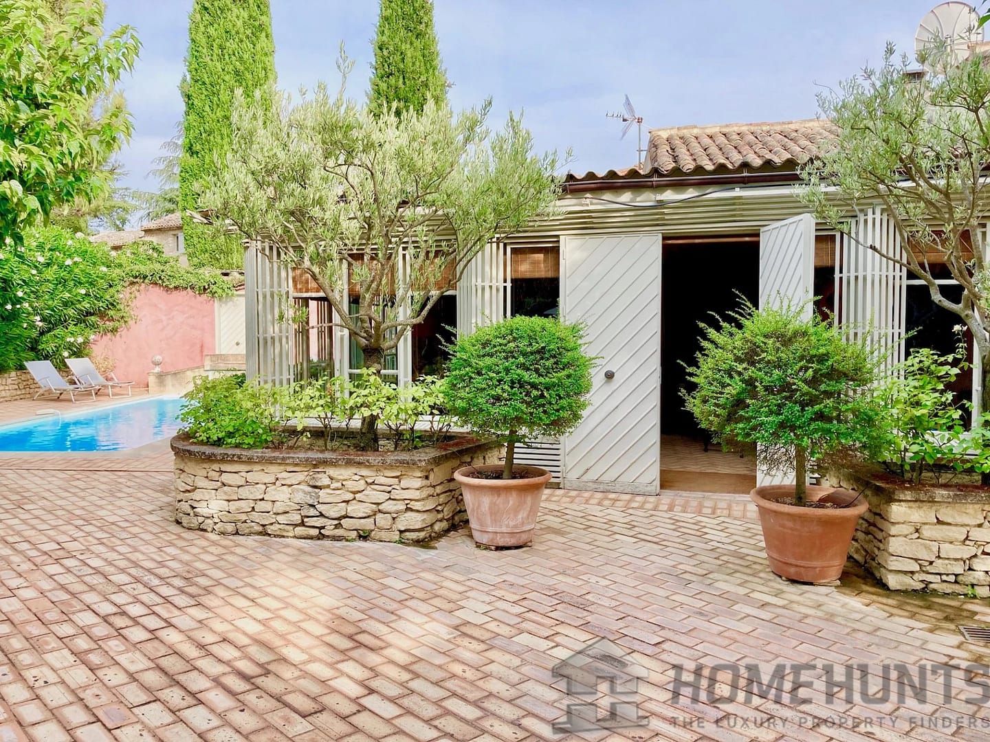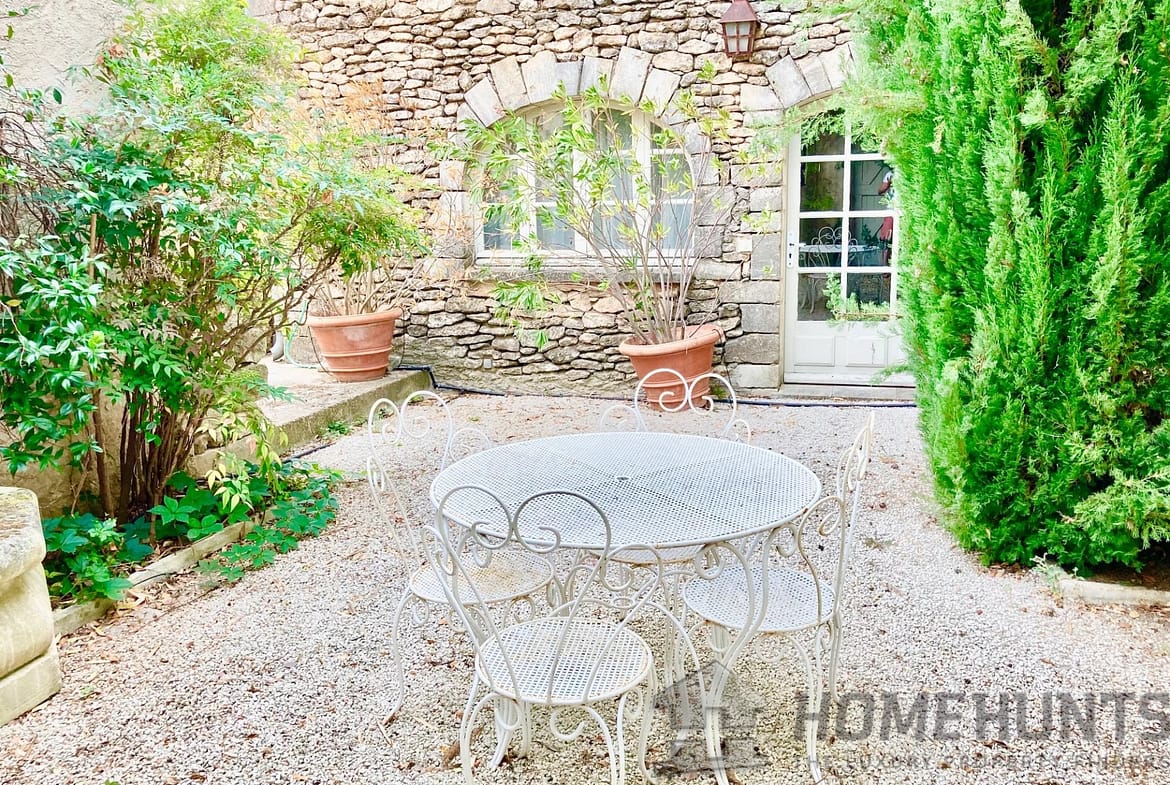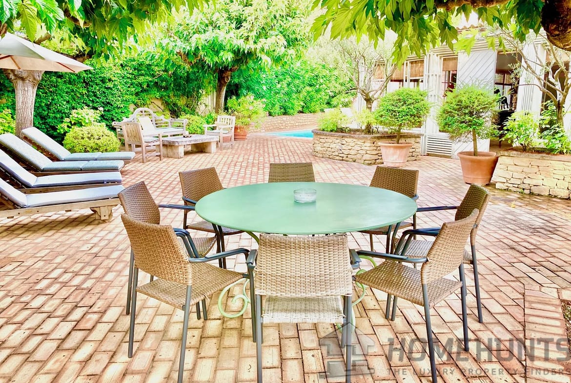 A garden/courtyard is beautifully landscaped with Provencal species. A swimming pool, a large summer awning, several terraces and a pool house with sauna and WC decorate the house. Two courtyards, one with a fountain, an enclosed and private parking space complete the package.