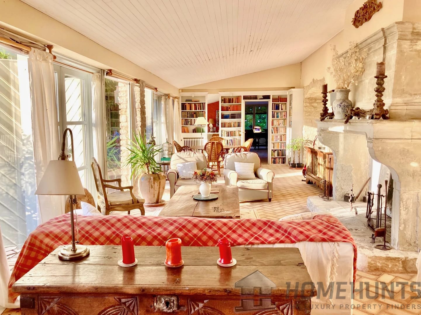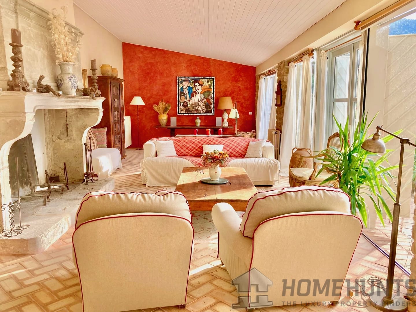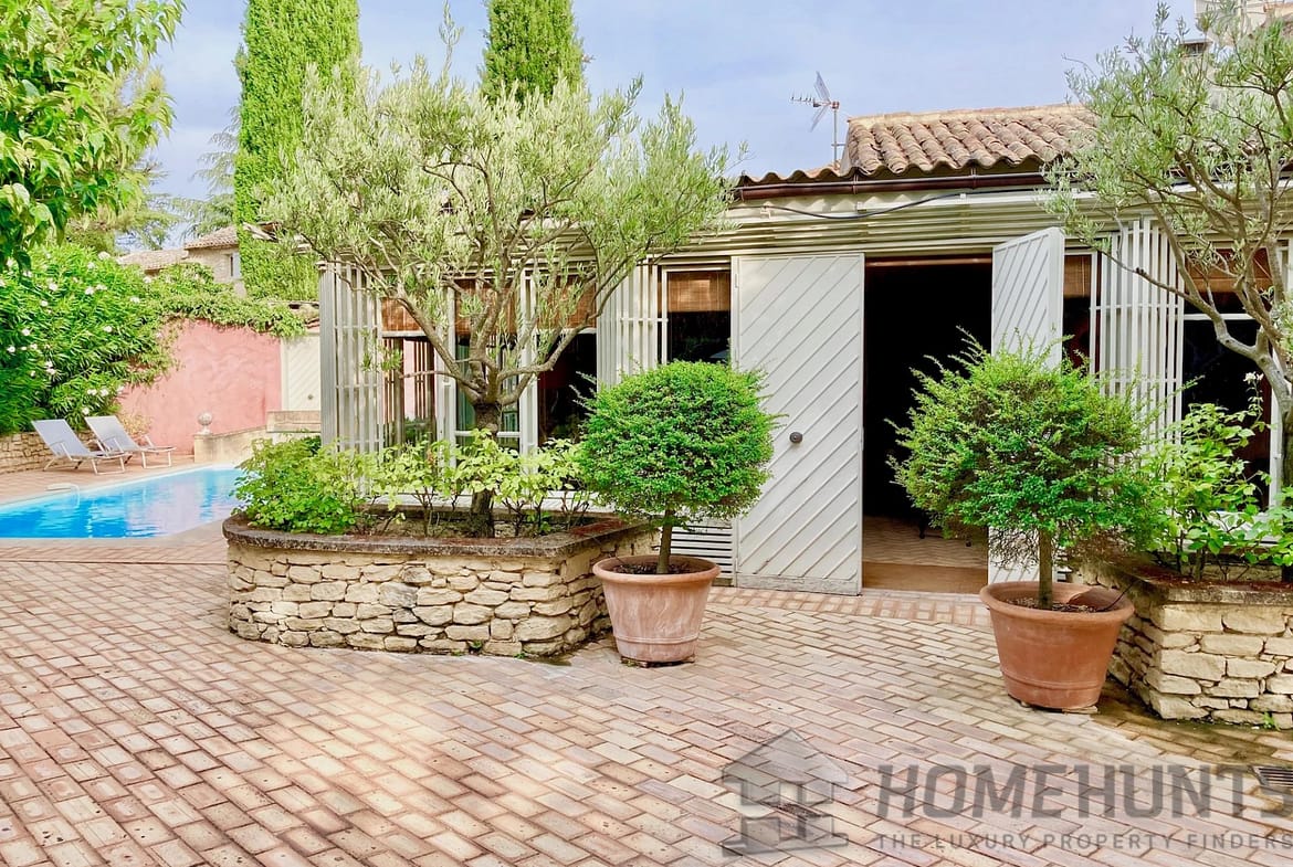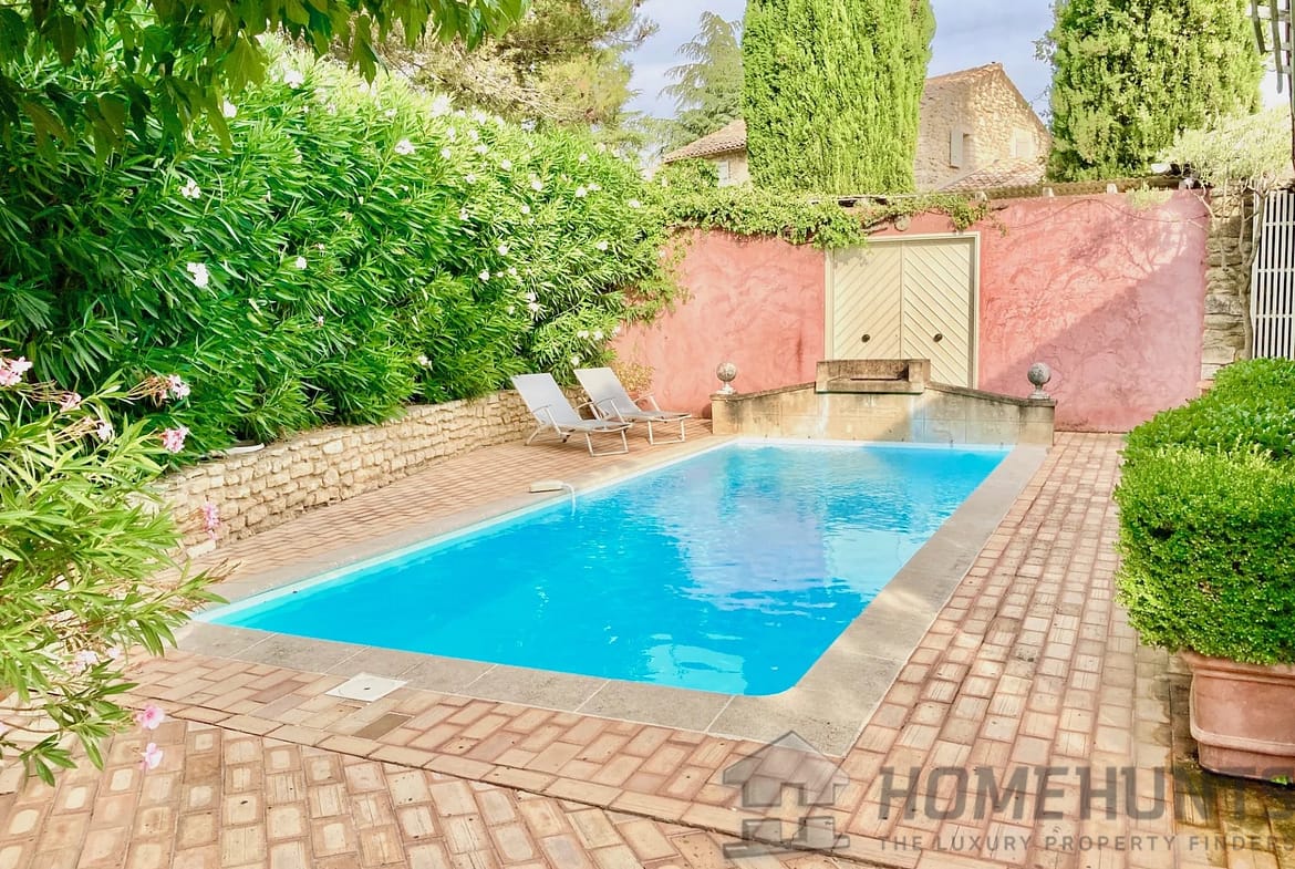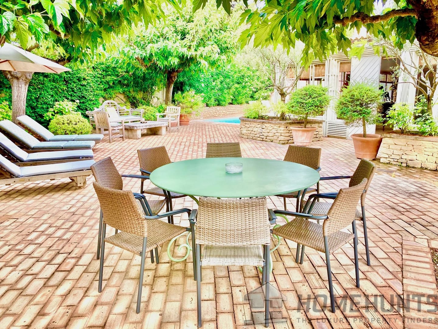A garden/courtyard is beautifully landscaped with Provencal species. A swimming pool, a large summer awning, several terraces and a pool house with sauna and WC decorate the house. Two courtyards, one with a fountain, an enclosed and private parking space complete the package.