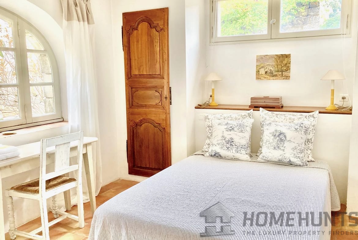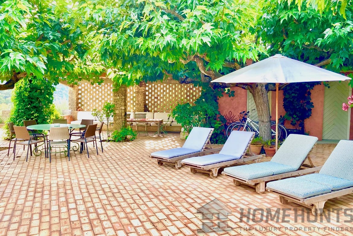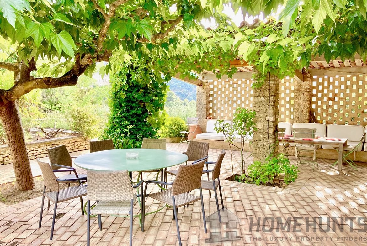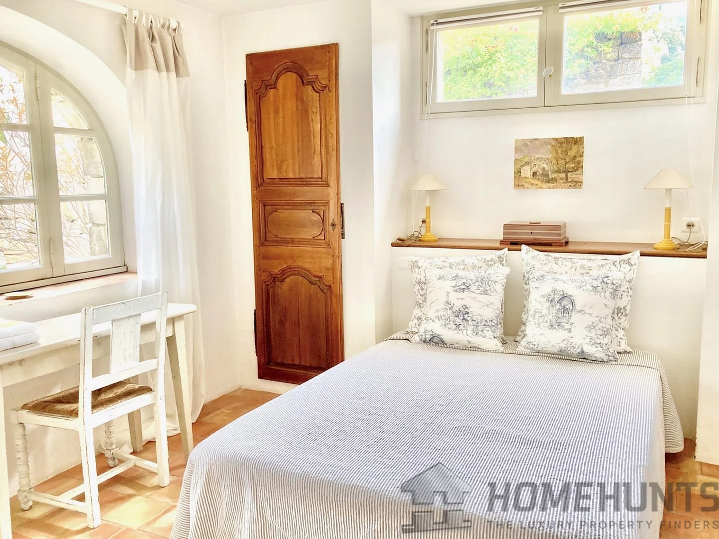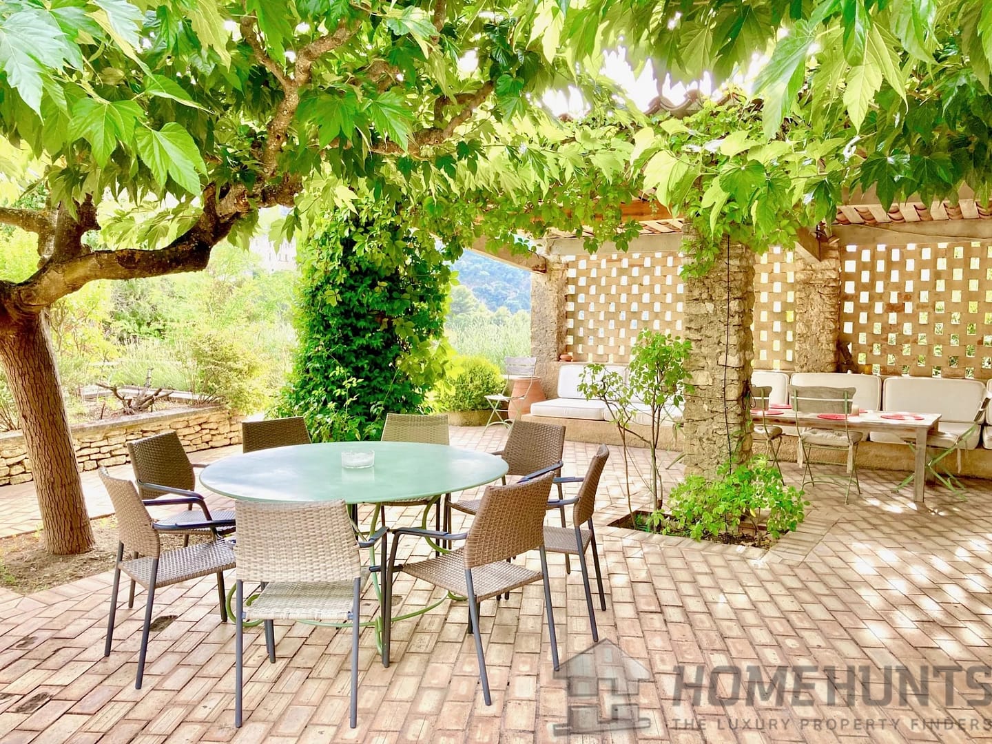 A garden/courtyard is beautifully landscaped with Provencal species. A swimming pool, a large summer awning, several terraces and a pool house with sauna and WC decorate the house. Two courtyards, one with a fountain, an enclosed and private parking space complete the package.
