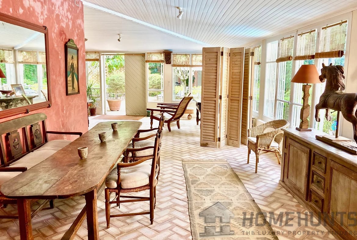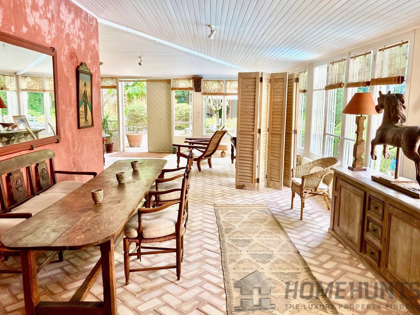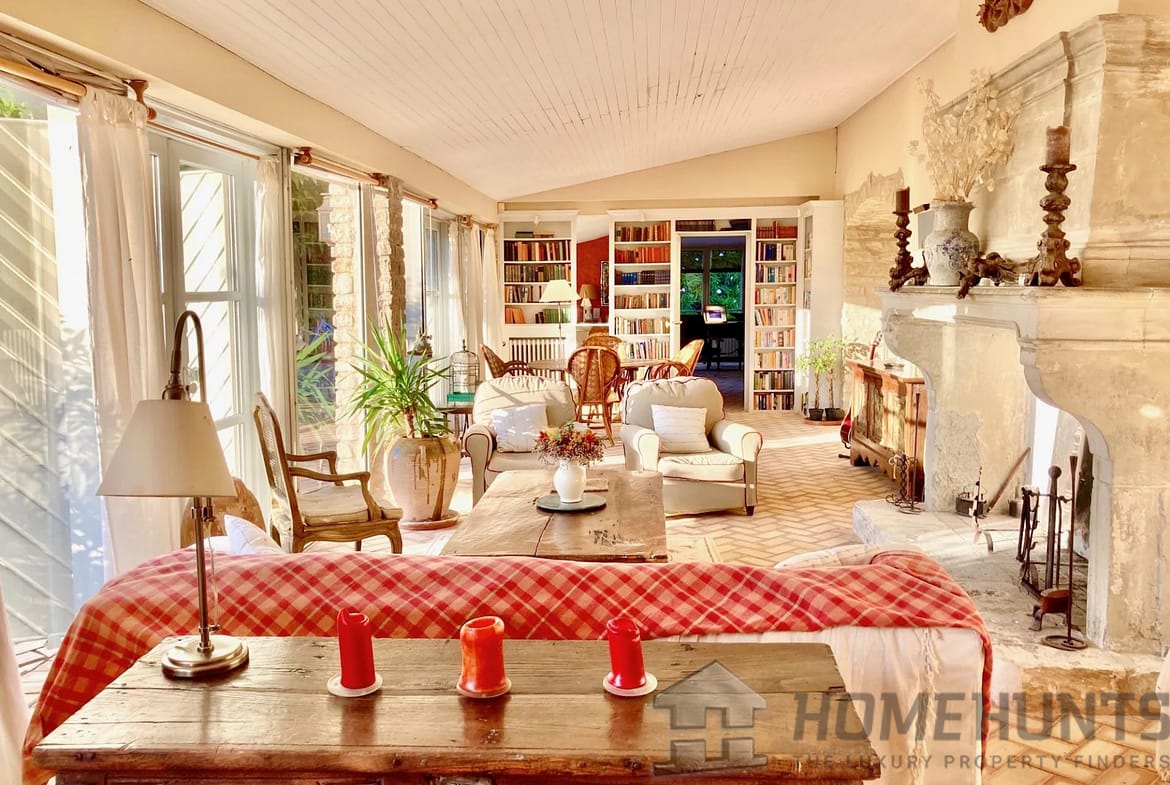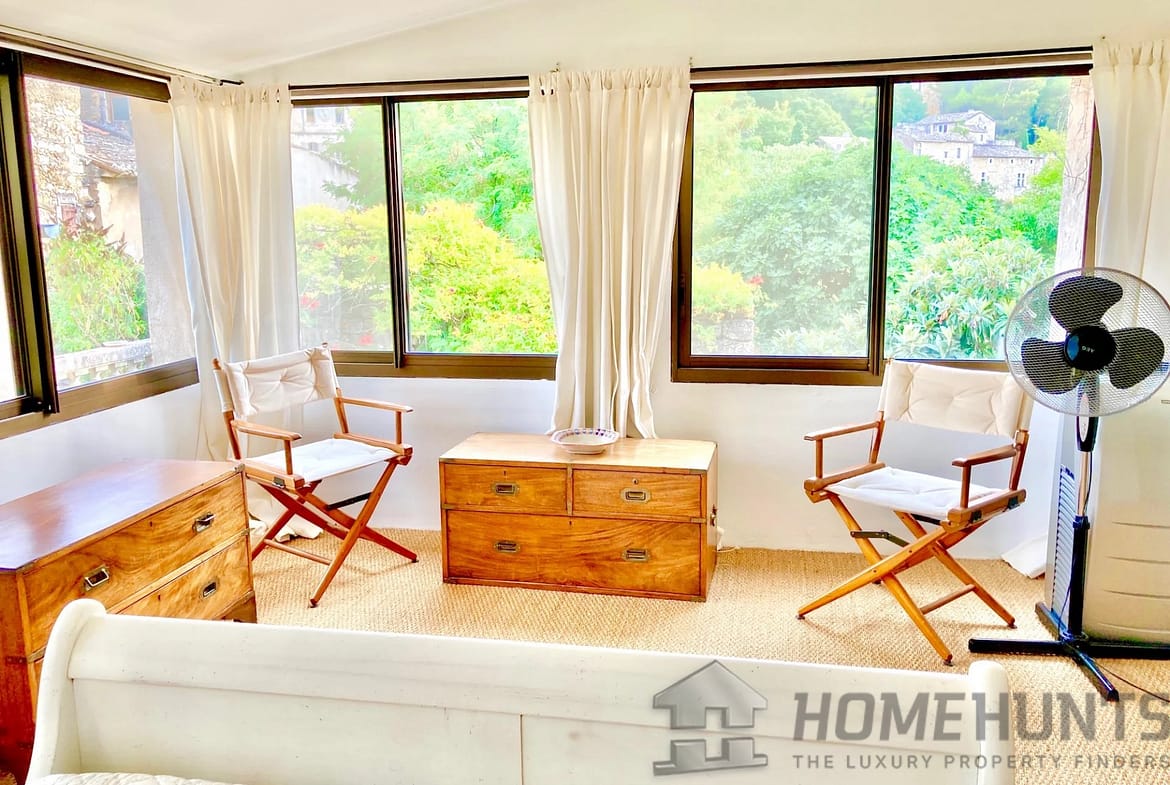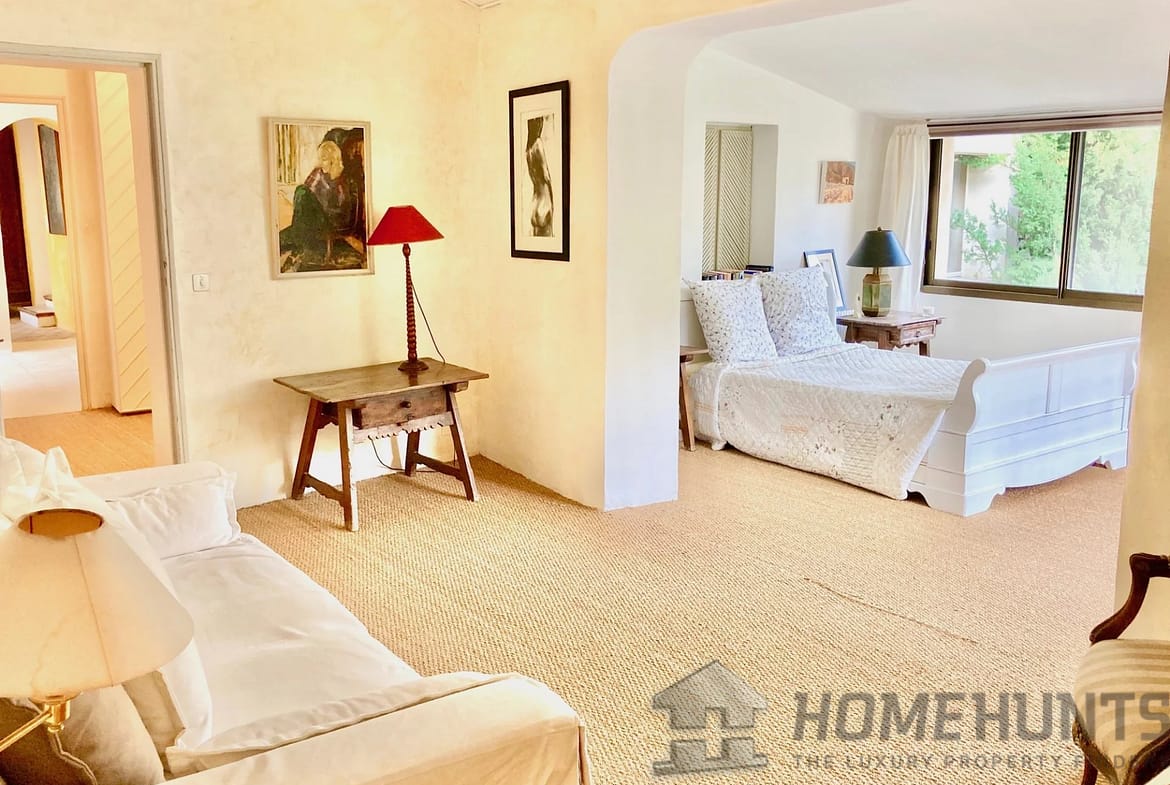 A garden/courtyard is beautifully landscaped with Provencal species. A swimming pool, a large summer awning, several terraces and a pool house with sauna and WC decorate the house. Two courtyards, one with a fountain, an enclosed and private parking space complete the package.