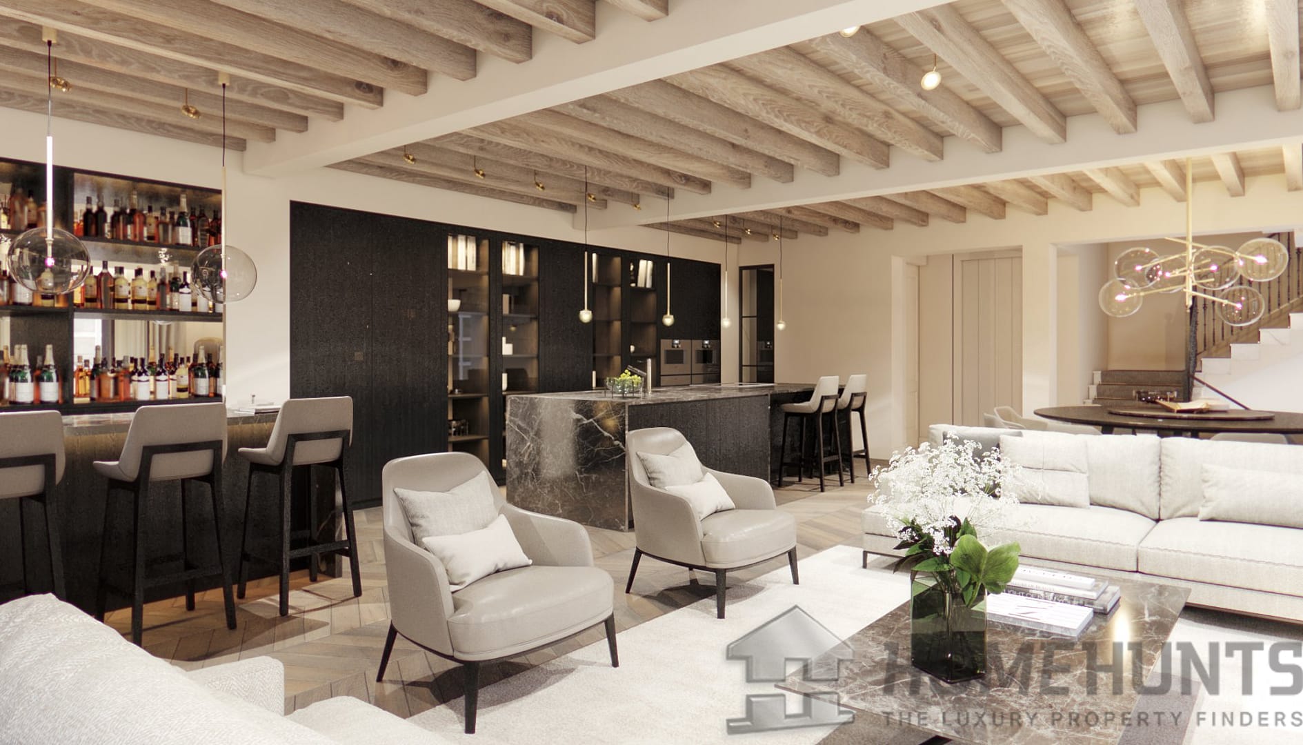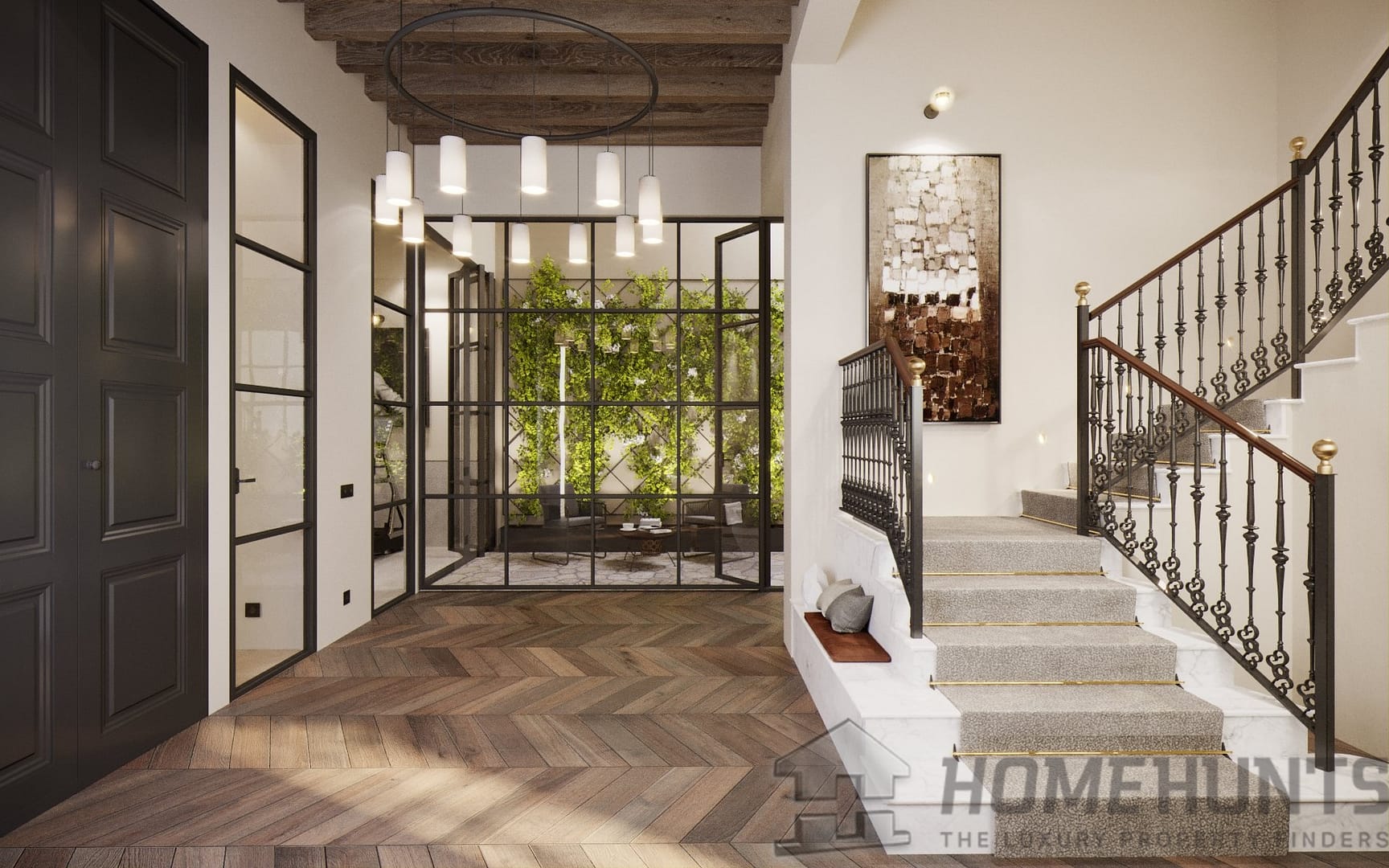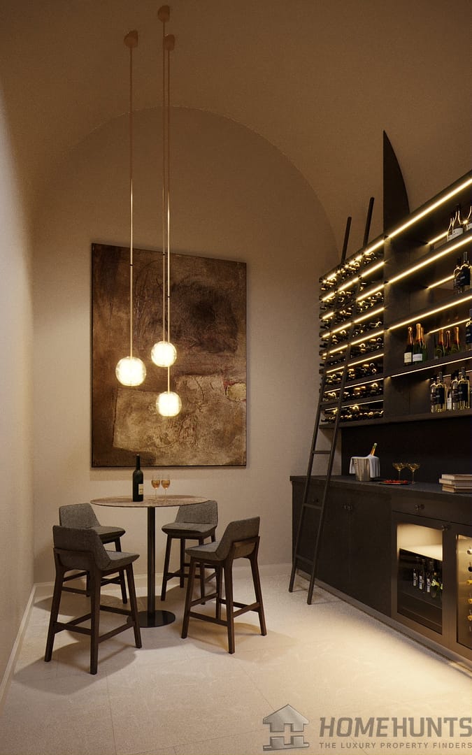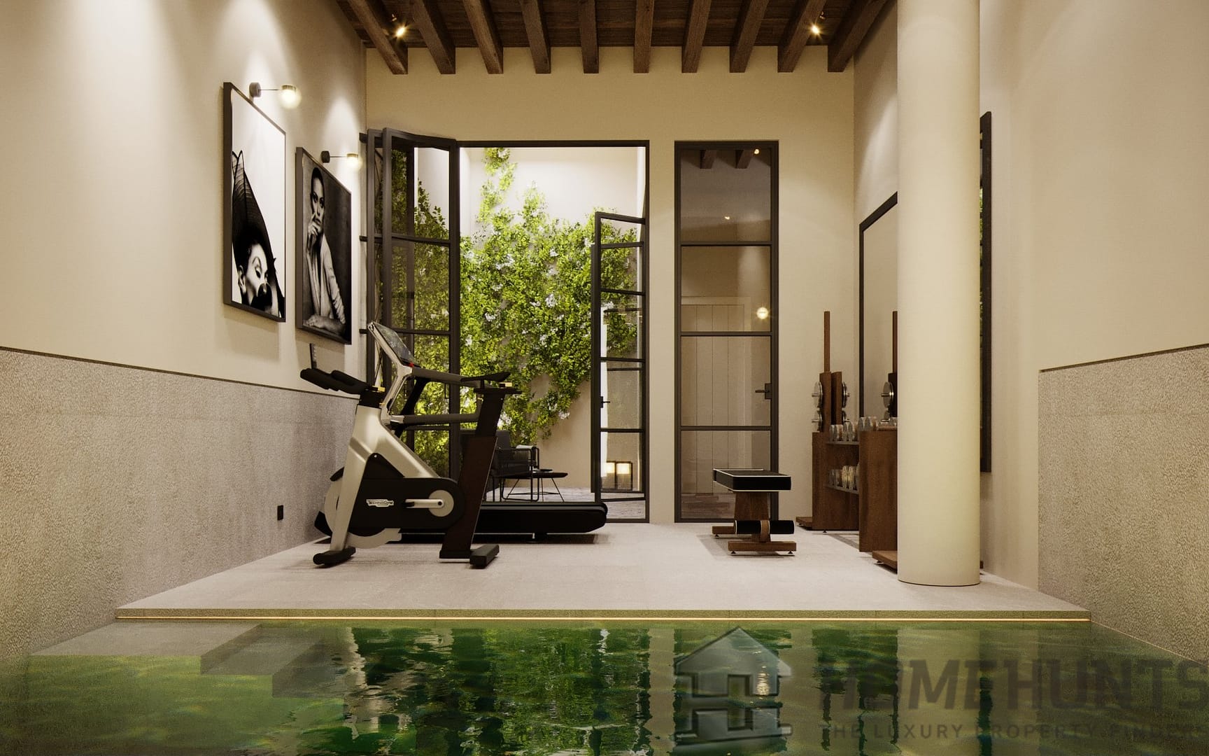 The new design-led layout compromises a wine cellar, 5 different floors and a roof terrace. The ground floor houses an indoor pool, spa, fully equipped gym and garage.
