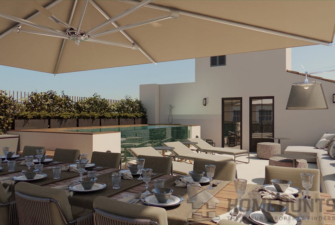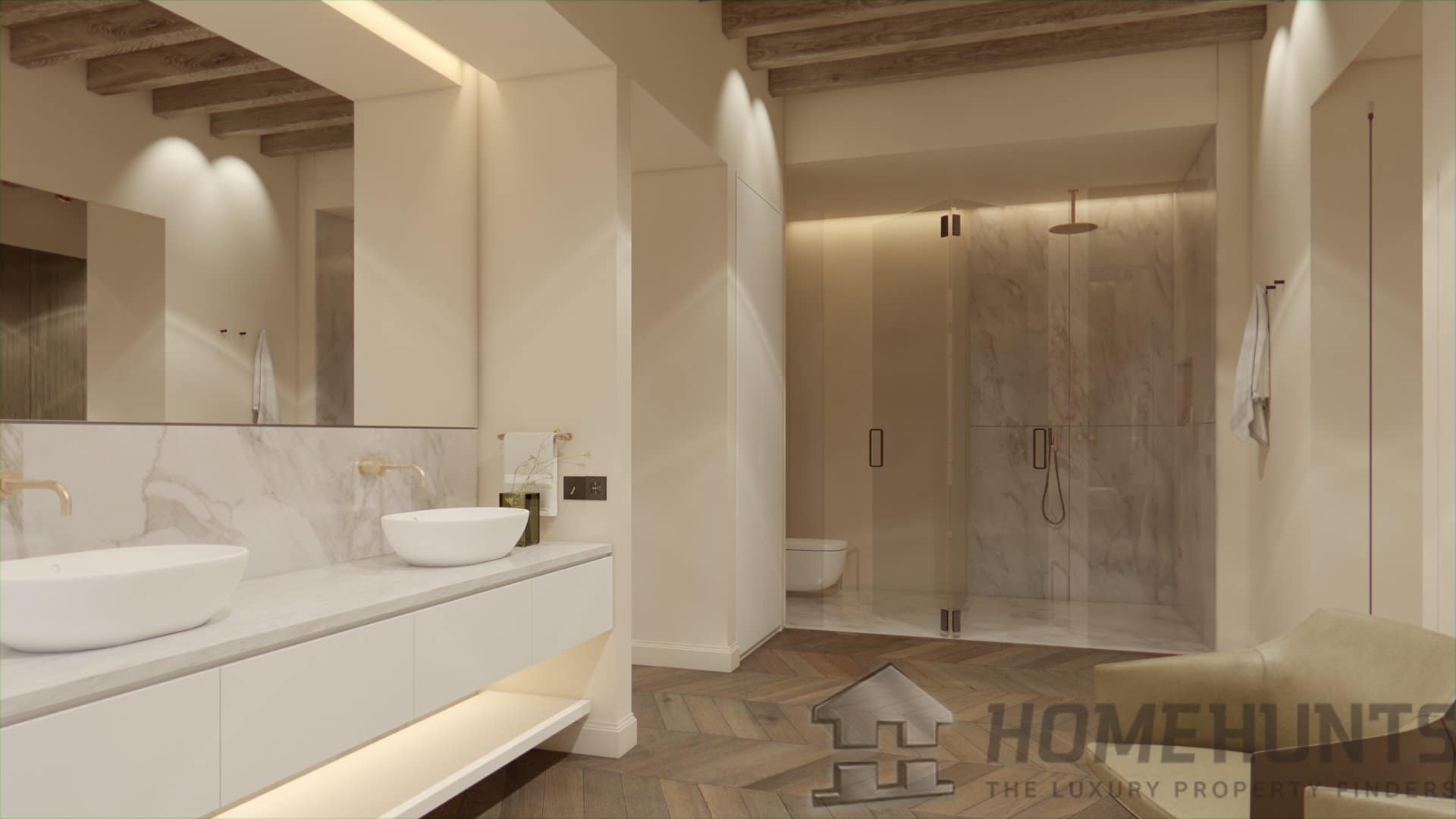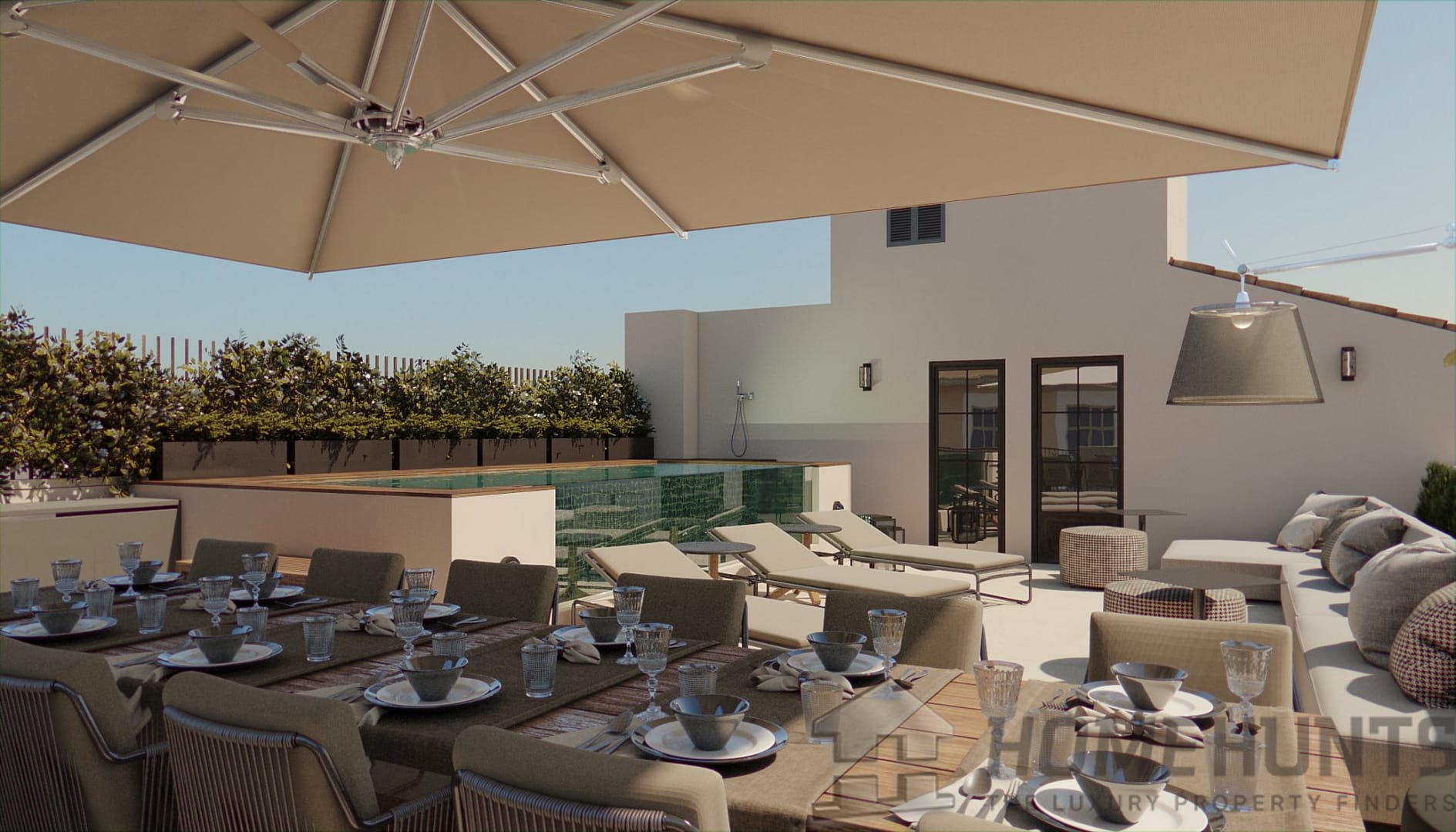 The new design-led layout compromises a wine cellar, 5 different floors and a roof terrace. The ground floor houses an indoor pool, spa, fully equipped gym and garage.