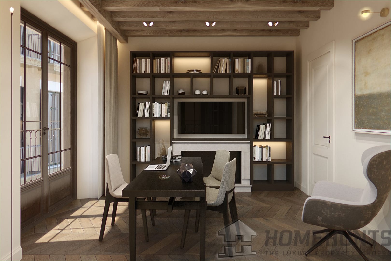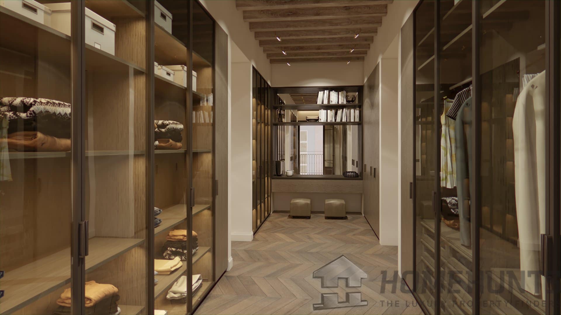 The first floor features a large private office with meeting room and library plus guest/staff apartment with kitchen and laundry. The elegant second floor has been configured into a 3 guest/family suites. Above on the third floor sits a private master suite with impressive living quarters, dressing room, spacious bathroom and huge light-filled master bedroom suite with sofa areas. The fourth floor contains an open-plan social/living area with huge kitchen, large bar and airy sofa and dining area.