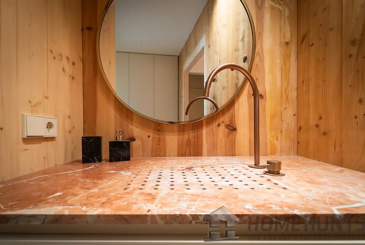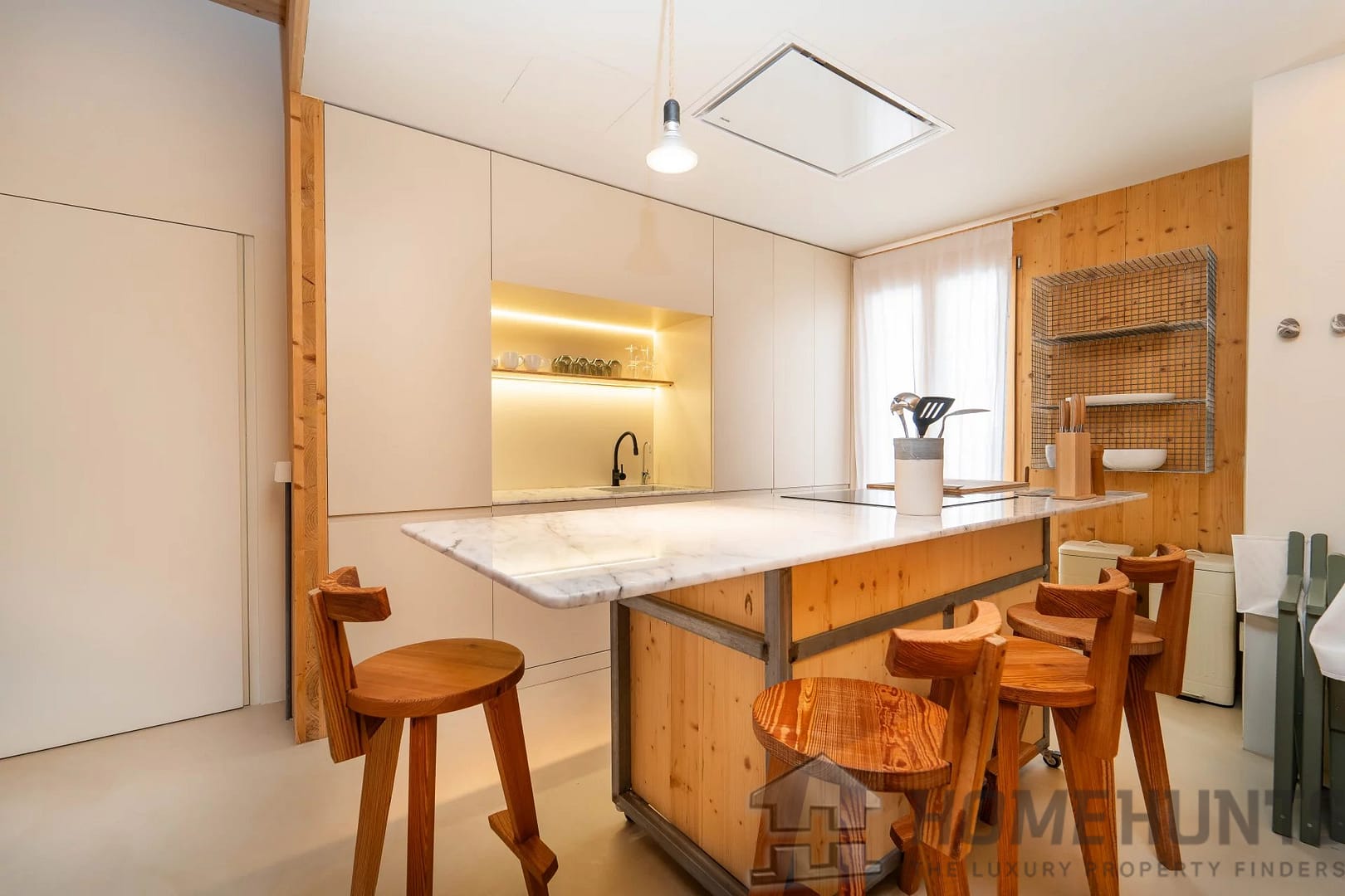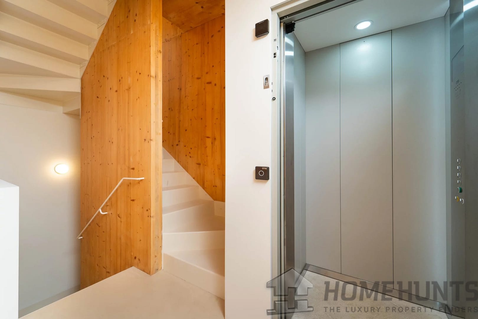 Wooden structure, interior and exterior lining in natural materials such as cork and wood, underfloor heating, effective insulation, aerothermal, electric charging socket in the garage and numerous unique design details give this urban jewel its exceptional character.