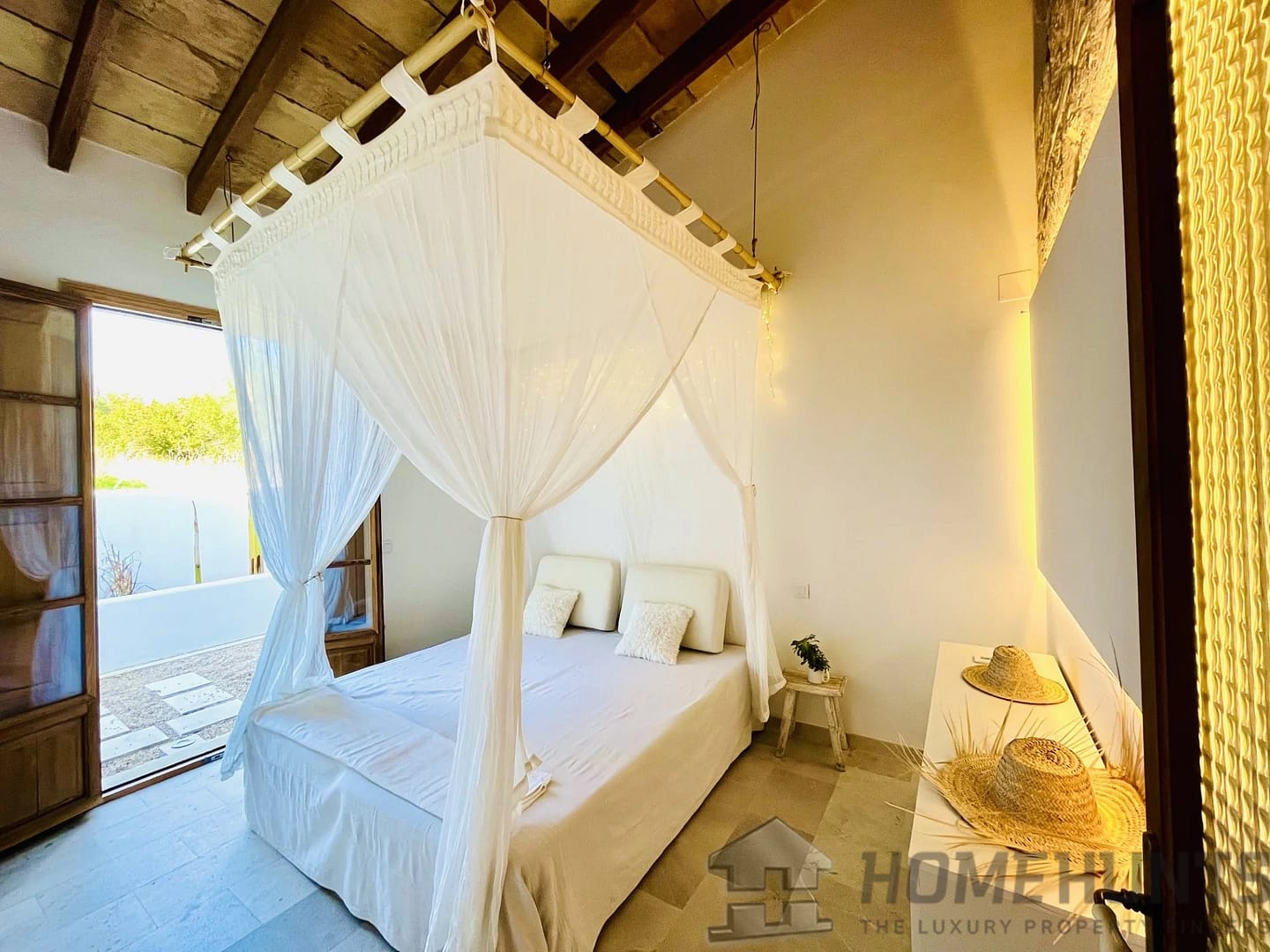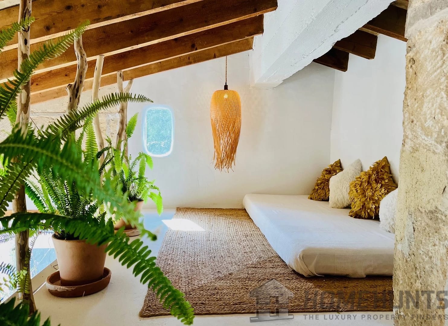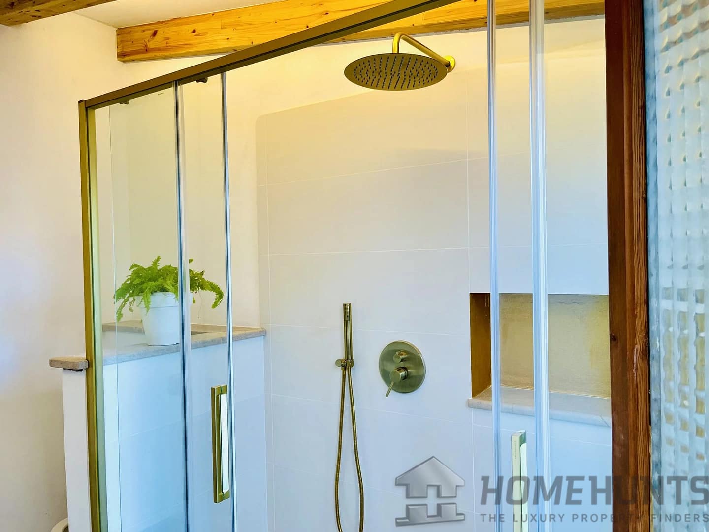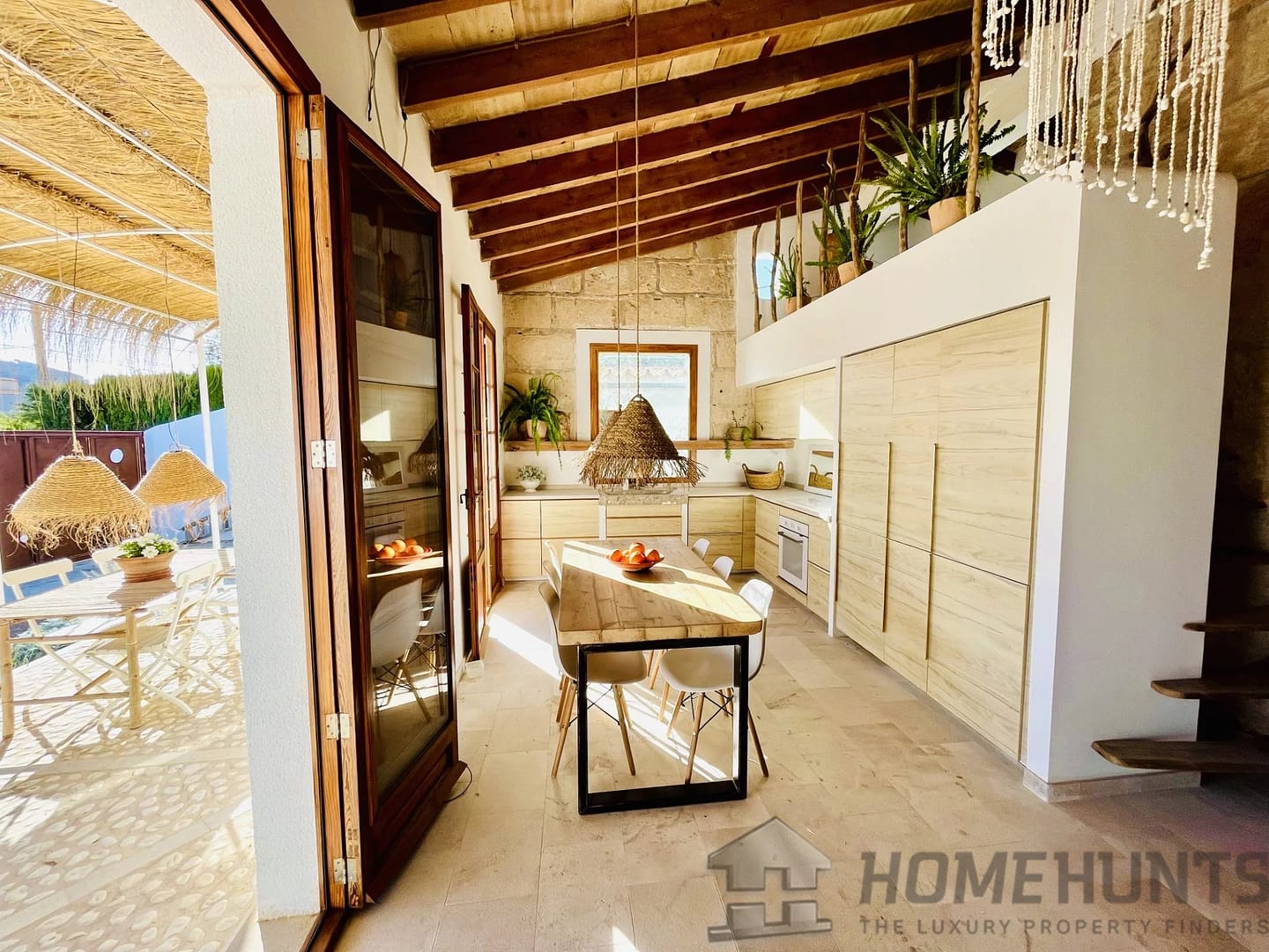 Comprising two separate buildings, the main house offers up to three bedrooms, two bathrooms, a practical loft and a bright living and dining room with an open plan kitchen. The adjoining building houses a second room with its own bathroom, ideal as a guest flat, work area, etc… Refurbished respecting the original materials, sustainability and simplicity, it immediately generates a feeling of well-being. Prepared for central heating and underfloor heating by aerotermia, it is offered as a permanent residence for the whole year.