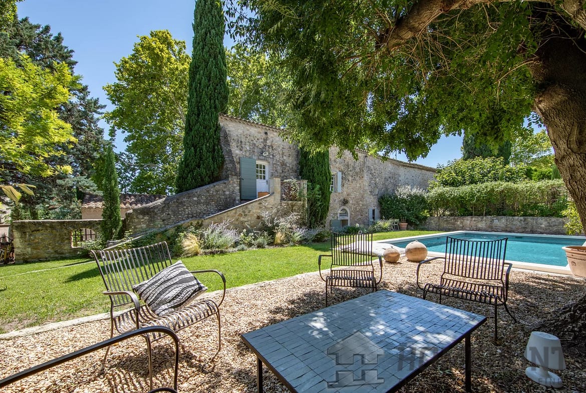 Nestled in the heart of one of the most sought-after villages in the Alpilles, this stunning and authentic stone mas enjoys an idyllic location, just a two-minute stroll from the village center, with its quaint cafes, boutiques, and Provencal charm.