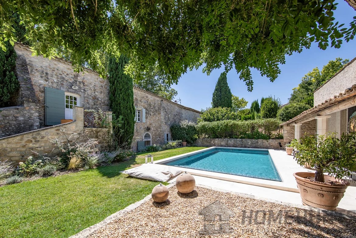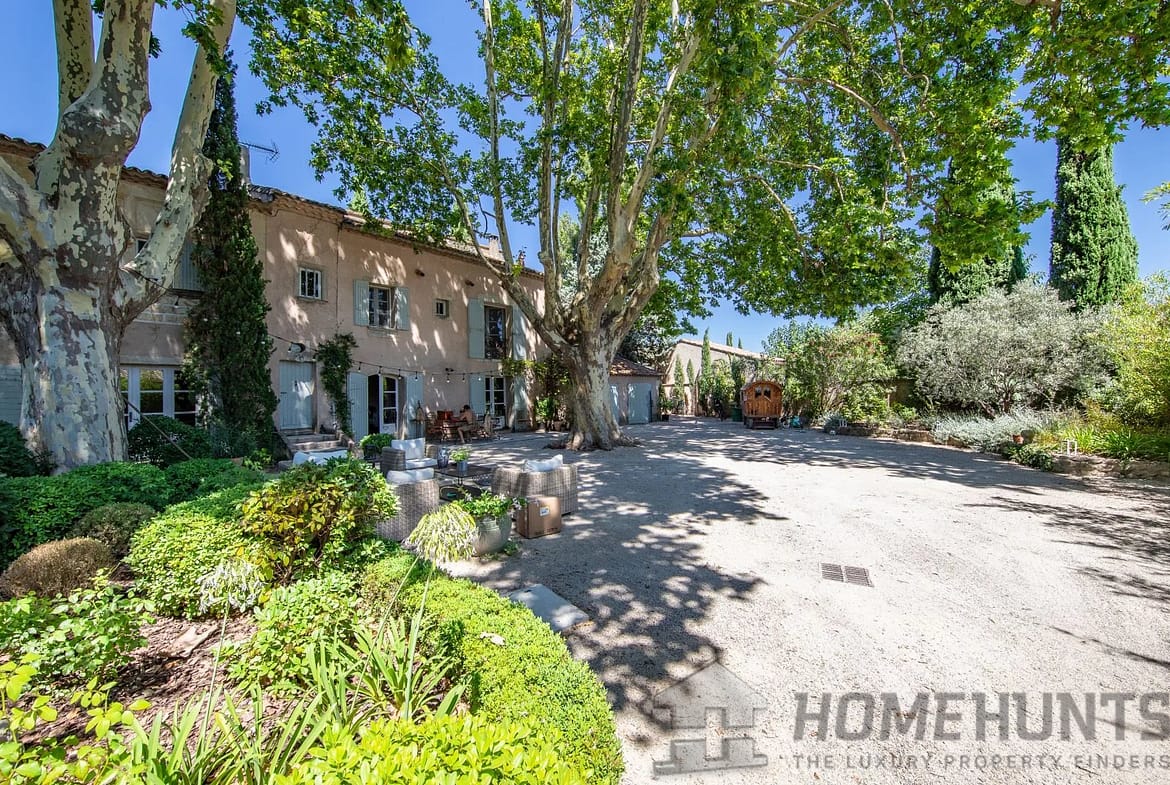 Framed by two majestic plane trees that provide dappled shade during the warm summer months, the property is a true embodiment of Provence’s timeless elegance. The beautifully landscaped gardens, filled with Mediterranean flora, create a serene and private setting, enhanced by a discreetly positioned swimming pool (10 x 5 m)—ideal for cooling off under the Southern sun.