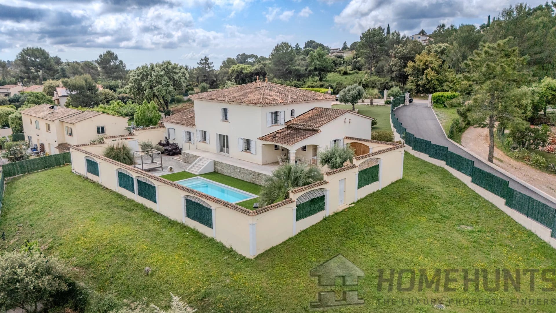 In a peaceful, sought-after setting, charming, spacious villa set in 2,951 m2 fenced beautifully landscaped grounds, featuring several terraces, a swimming pool, a double garage with mezzanine and a pergola.