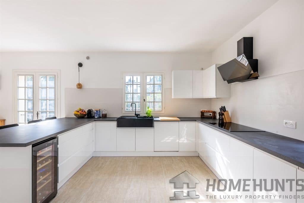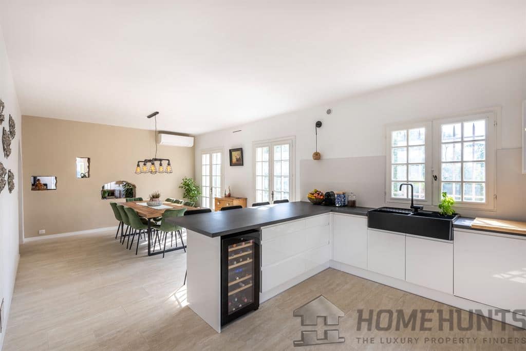 Set on approximately 345 m2, the property stands out for the quality of its renovation and generous interior volumes. It includes a spacious living room, a fully equipped kitchen, seven bedrooms, and several terraces with views over the landscaped garden.