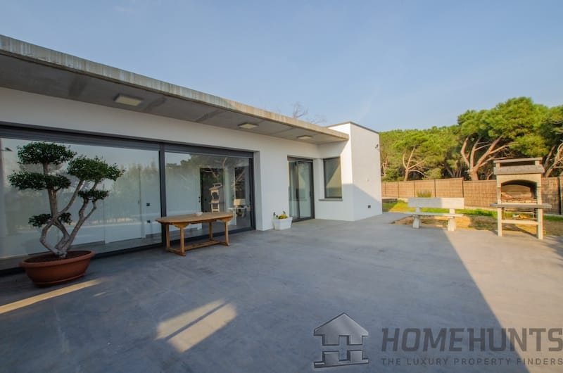 Spectacular house for sale of new construction in Castell d’Aro, on a flat plot of 1056 m2 located in the center of the village. It has a constructed area of 132 m2 (210 m2 in total), all on a single ground floor, and is distributed from its entrance by Crota street, on an access ramp to the esplanade and space for parking and a warehouse-storage room that also can be accessed from inside of the house, at the main entrance with a large dining room and modern kitchen through large windows the clarity enters the whole day and extends to the exterior with 2 terraces to form an extraordinary outdoor dining room.
