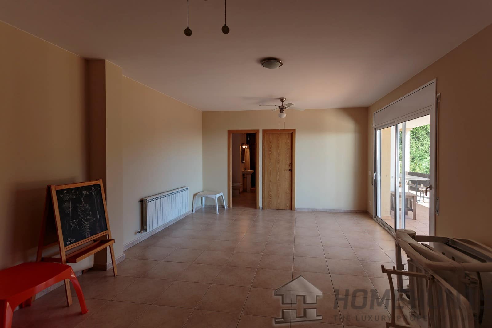 Ground floor: entrance hall, playroom, bedroom, bathroom with shower, toilet, terrace, staircase to the first floor.