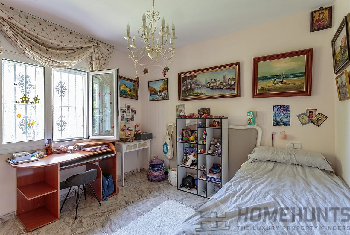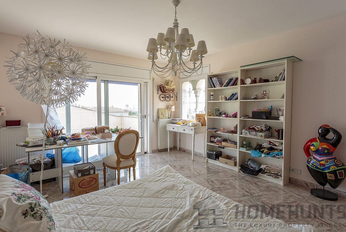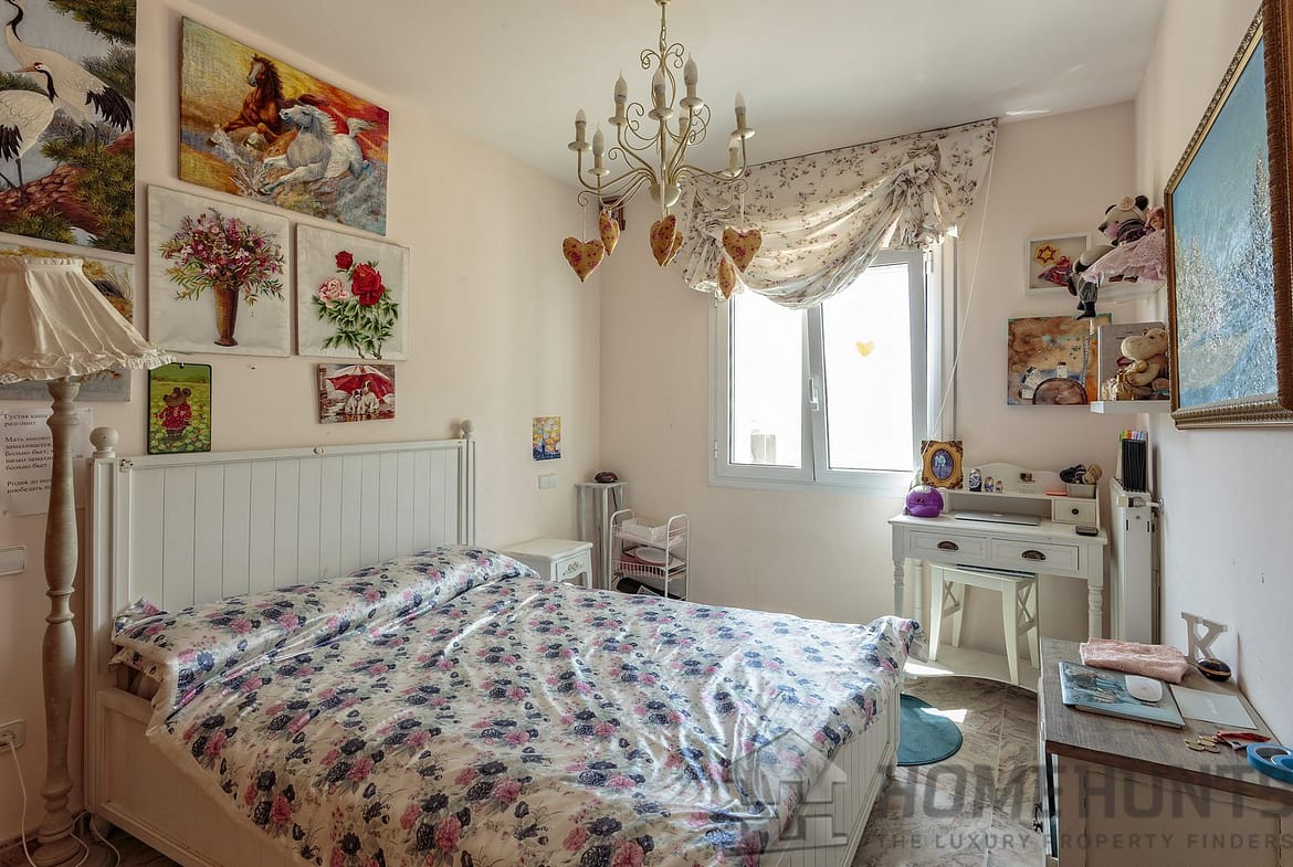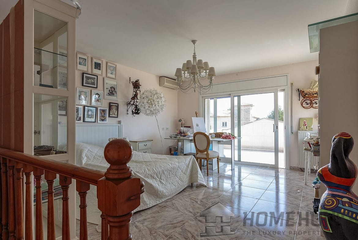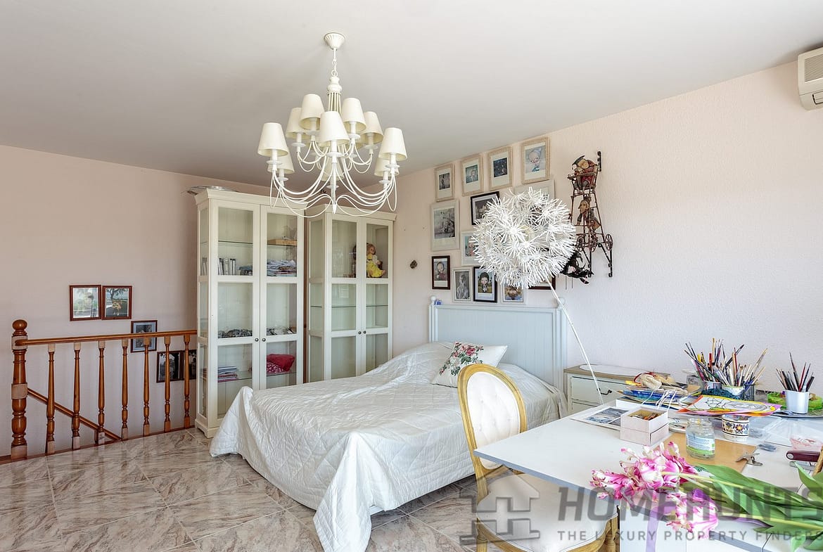 Spacious entrance hall, lounge with fireplace and access to the terrace, separate fully equipped kitchen, bathroom with bath tub, laundry with access to the patio, dining room (can be used as an office or a bedroom), garage for 2 cars. Bedroom wing: second living room-cabinet, 3 children’s bedrooms, bathroom with bath tub, luxury bedroom with bathroom with bath tub and dressing room with access to the terrace. Large terrace along the perimeter of the house.