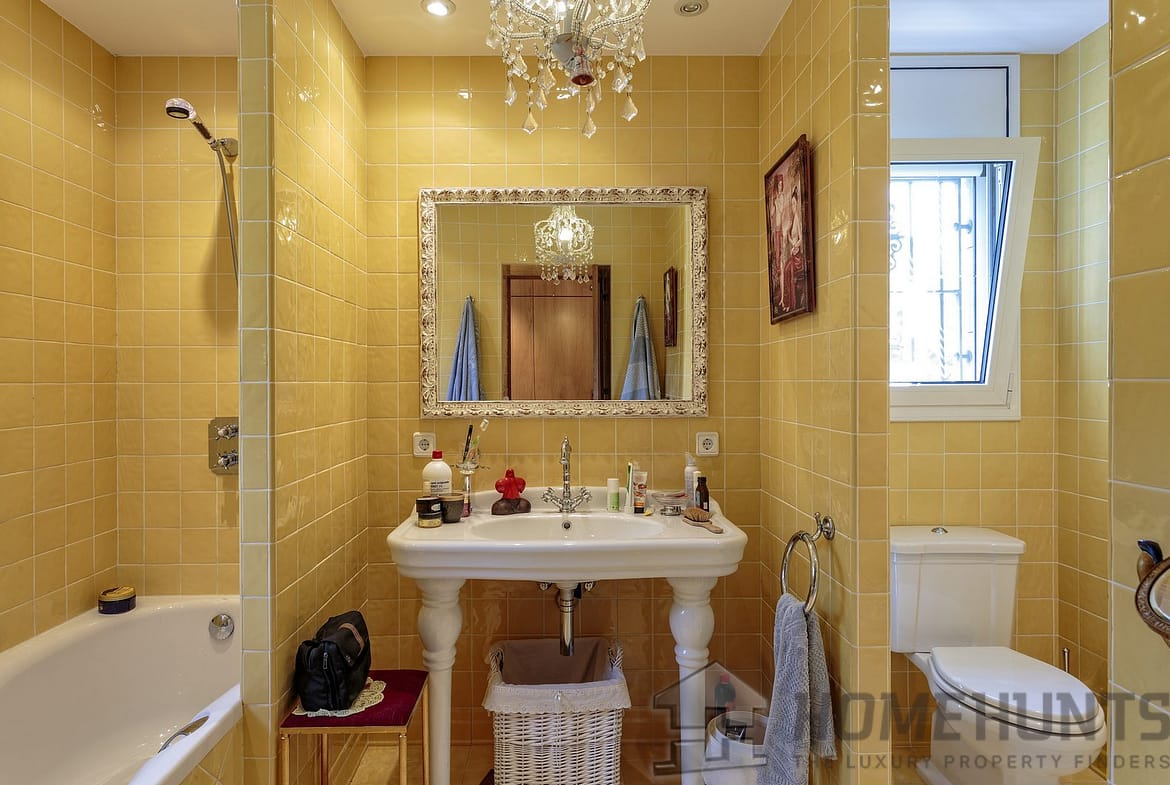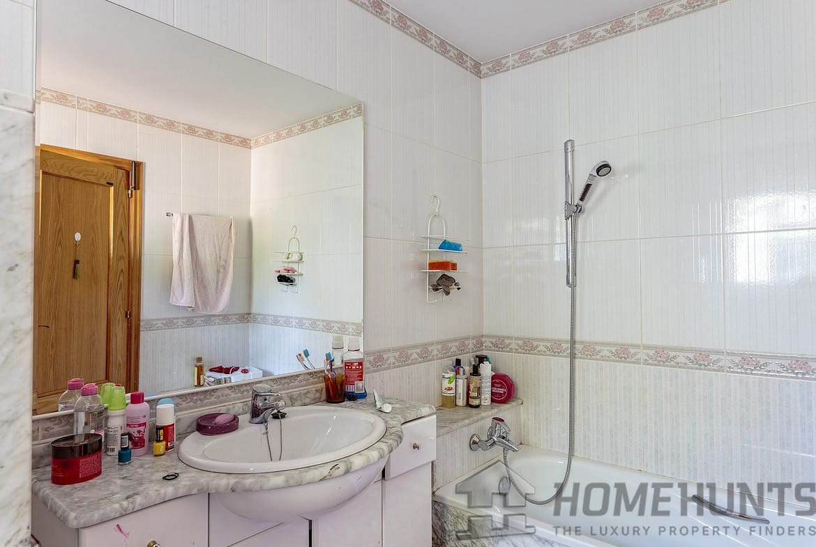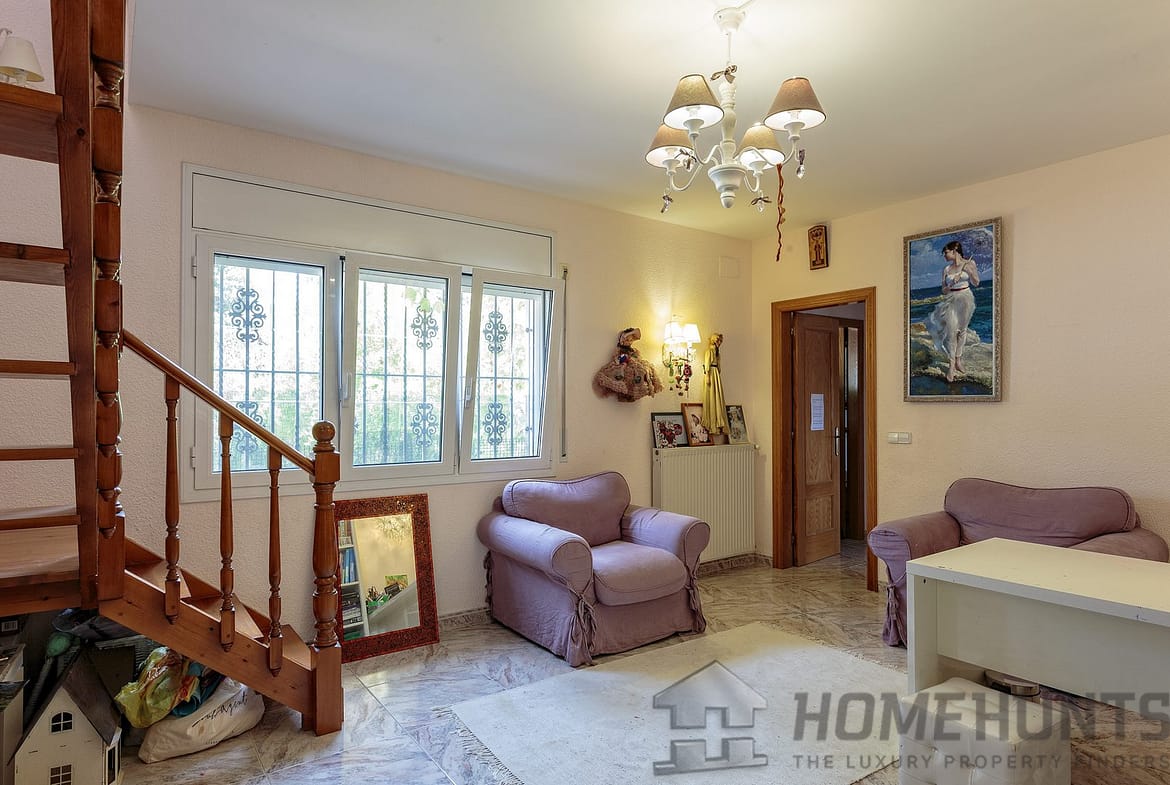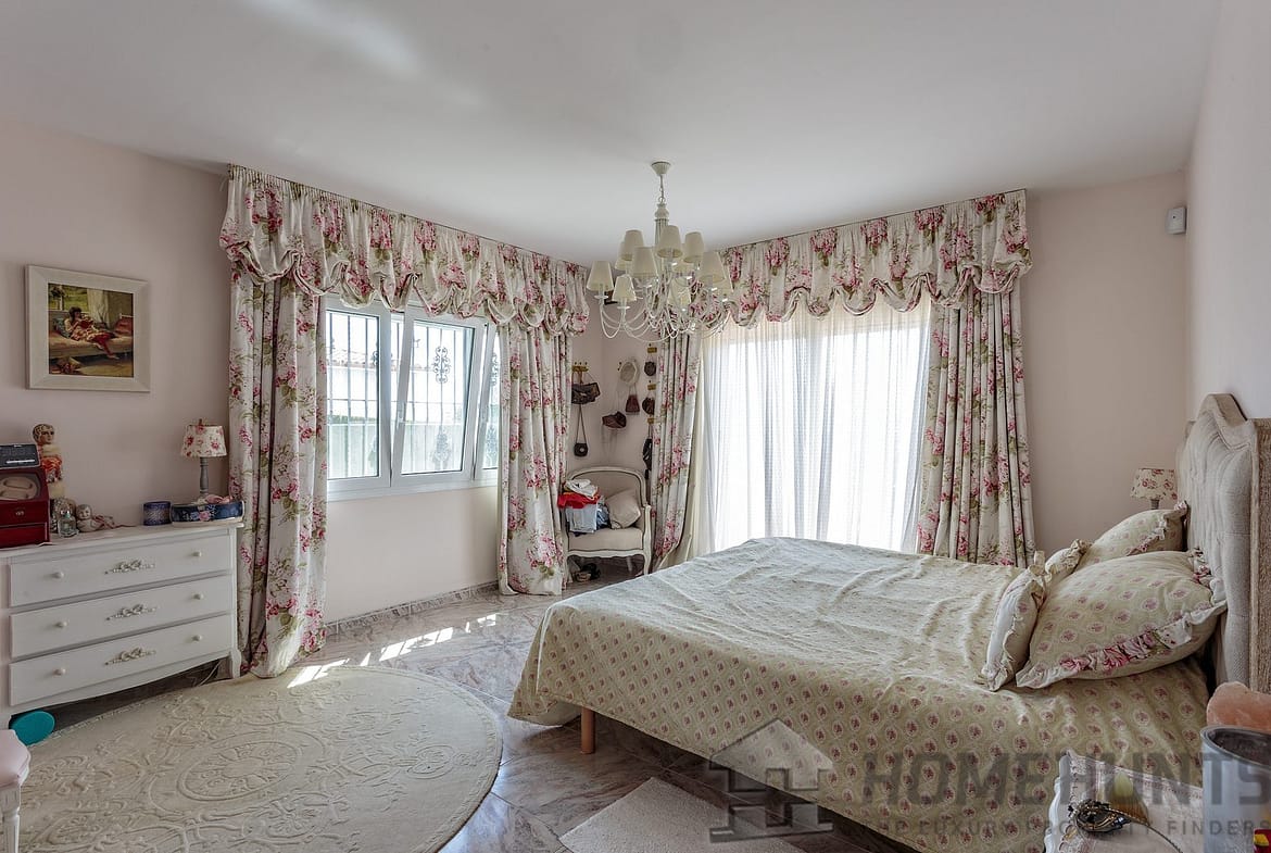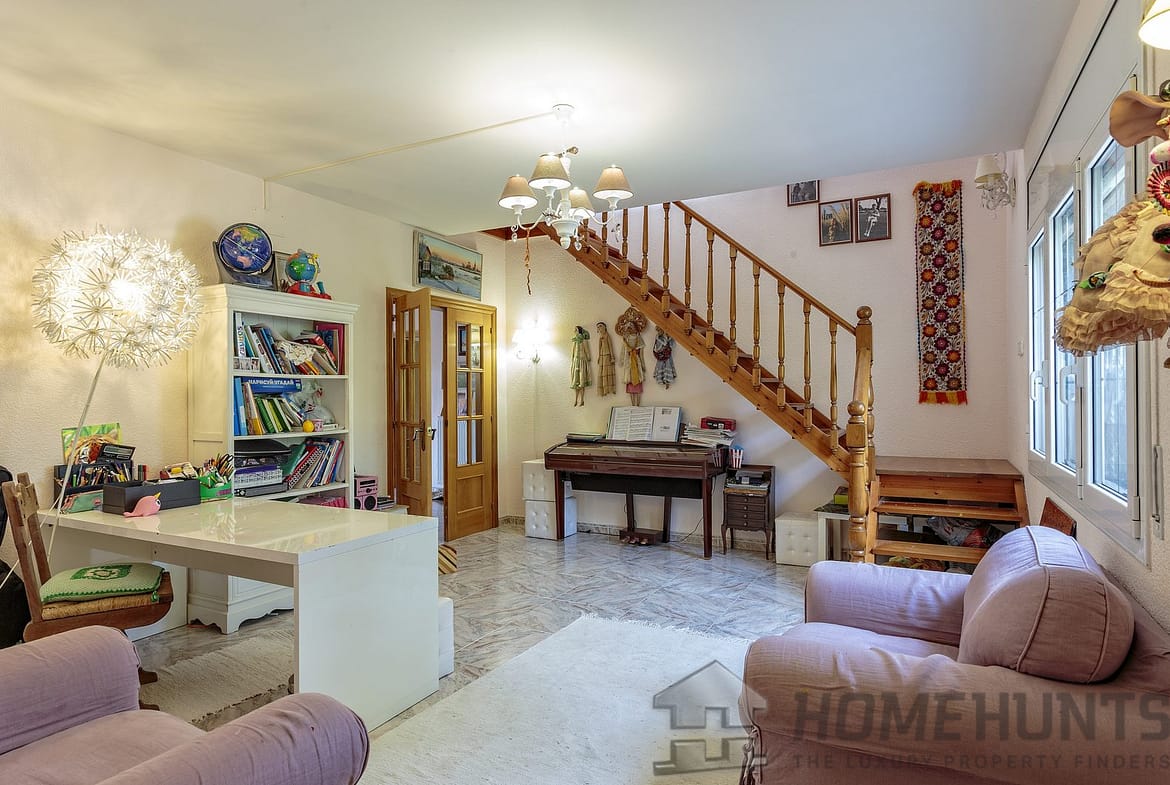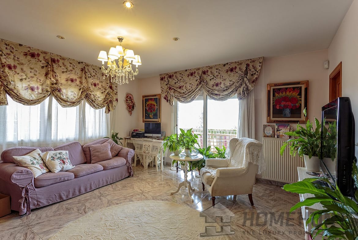 Spacious entrance hall, lounge with fireplace and access to the terrace, separate fully equipped kitchen, bathroom with bath tub, laundry with access to the patio, dining room (can be used as an office or a bedroom), garage for 2 cars. Bedroom wing: second living room-cabinet, 3 children’s bedrooms, bathroom with bath tub, luxury bedroom with bathroom with bath tub and dressing room with access to the terrace. Large terrace along the perimeter of the house.