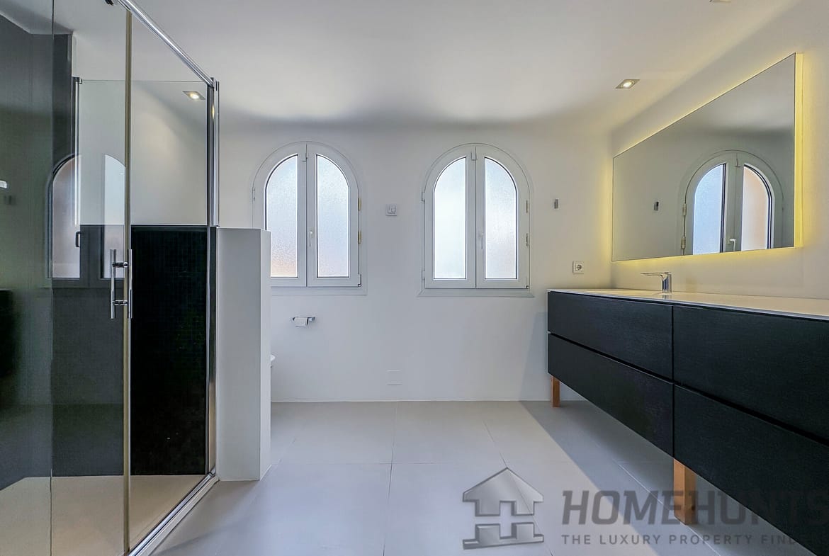 Upstairs is the master bedroom with en suite bathroom and dressing room, which has access to a sun terrace with direct access to the pool. Two further bedrooms share a bathroom and one of these rooms leads to a tower that can be used as an office or for other purposes.