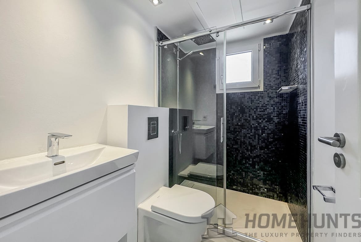 On the first floor you will find a living room, a dining room, a kitchen and a guest WC. On the mezzanine floor there are two guest bedrooms, each with its own en suite bathroom.