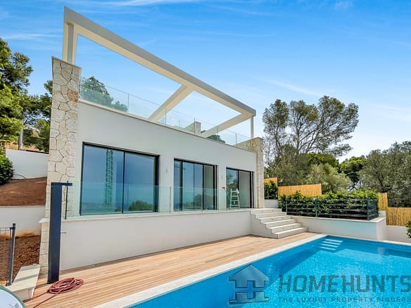 This exclusive designer villa under construction is located in Puerto Portals and offers fantastic sea and panoramic views.