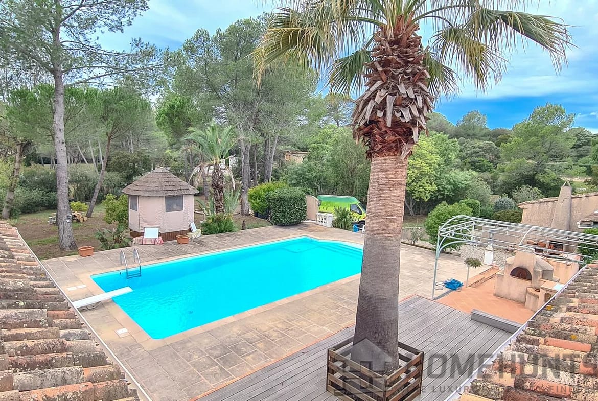 In the heart of a secure residential area, in an exceptional green environment, perfectly quiet, this Provencal farmhouse with 7 main rooms.