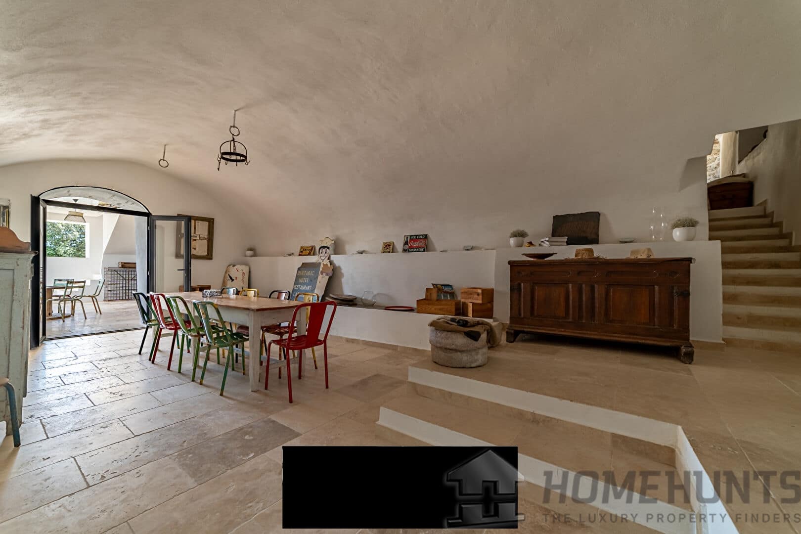 On one level, there is a first reception lounge, a charming vaulted reception room opening onto the summer kitchen adjoining the swimming pool.