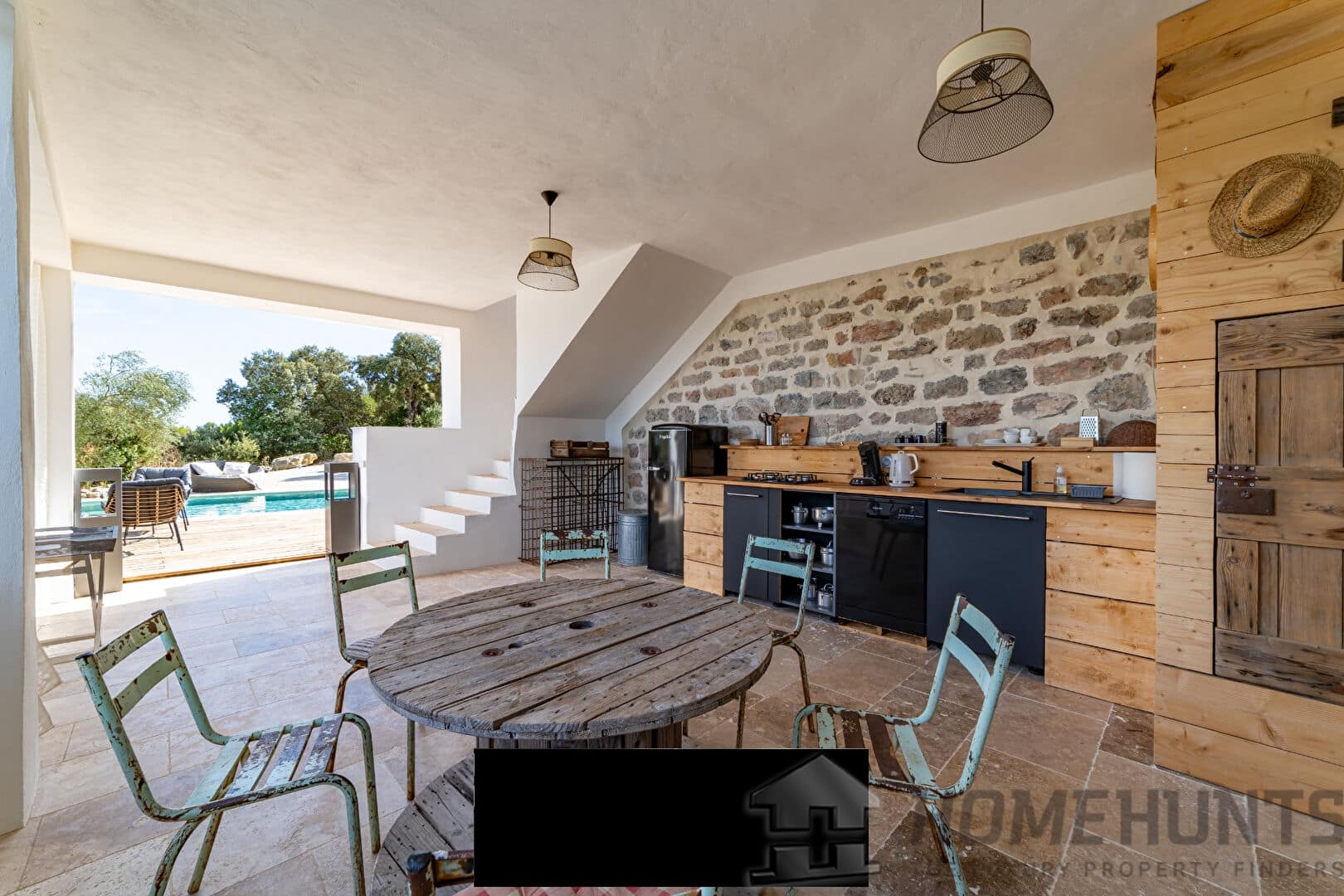 The farmhouse offers more than 400 m2 of living space in the heart of a private estate of more than 2.5 hectares between Nîmes and Montpellier, just 5 minutes from shops and 35 minutes from a TGV station.