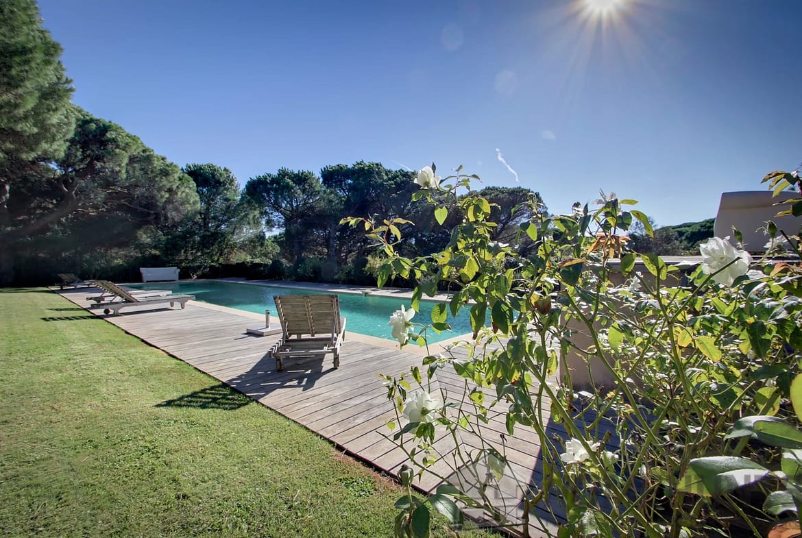 The villa consists of a large living room with fireplace opening onto the garden, a dining room opening onto the summer lounge and the swimming pool with a lovely view of the Pine forest, an equipped kitchen with independent entrance and a pantry/laundry room.