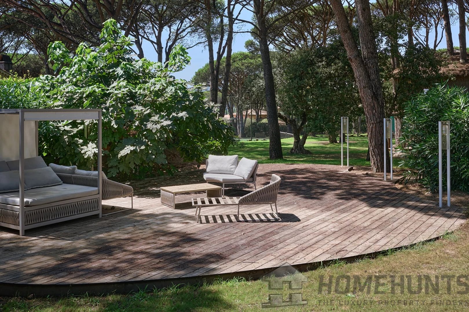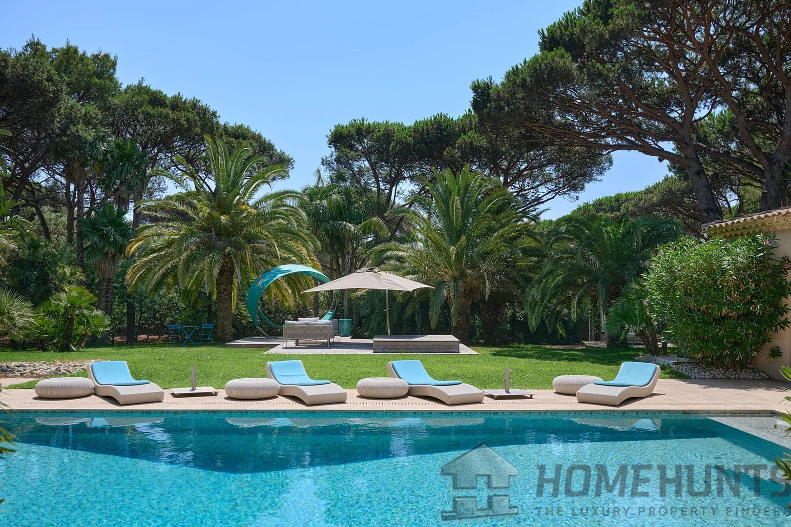 In the heart of a landscaped park of 11,729 m2, this property is located in the sought-after Tahiti area of Ramatuelle, just 800 meters from Pampelonne Beach while still being close to the center of Saint-Tropez.