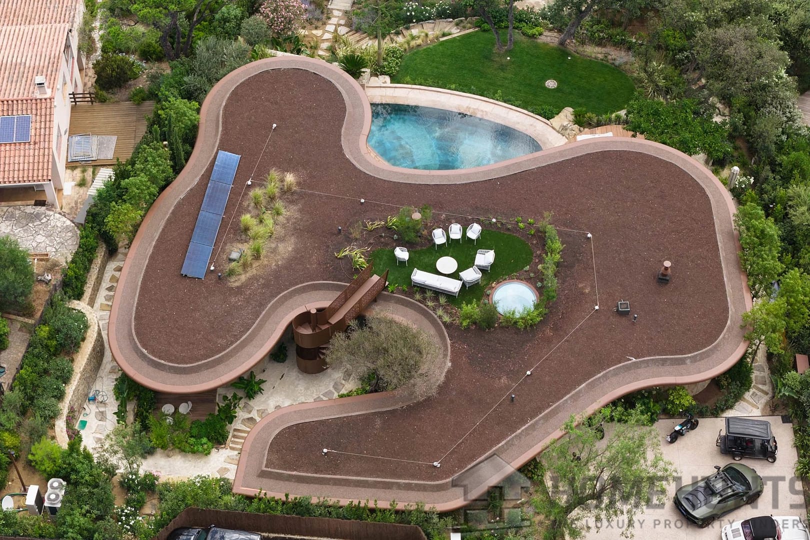 Nestled atop a hill overlooking the majestic Pampelonne Bay, stands a true architectural masterpiece. This residence spans two levels, offering breathtaking panoramic views of the sea, all within a generous 500-square-metre living space, comprising eight bedrooms.