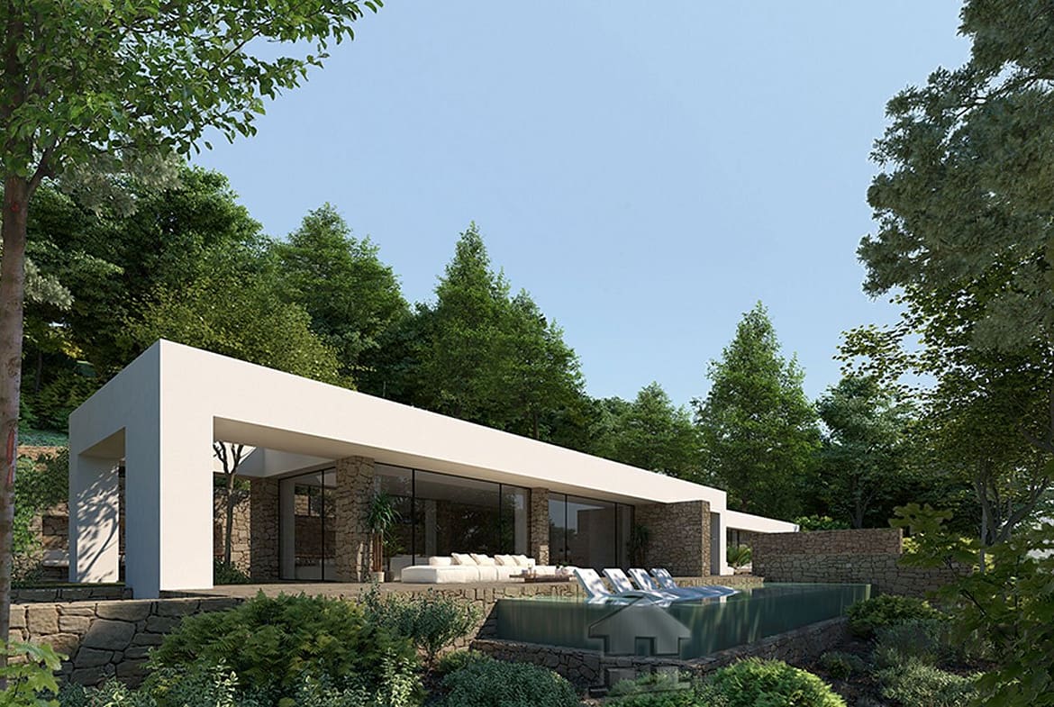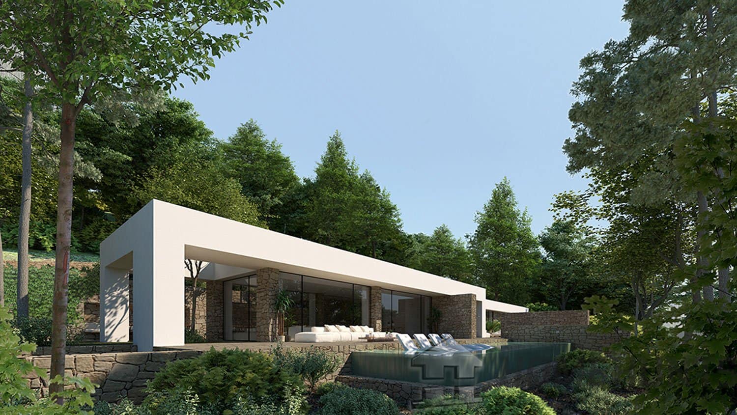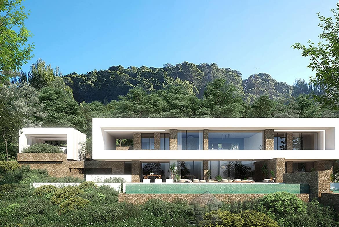 Each of the villas sized from 511m2 to 743 m2 has a plot of at least 1500 m2 with absolute privacy and, in turn, are located in an elevated position that offers stunning panoramic views over the exclusive golf course of Roca Llisa and over a green sea of pine trees.