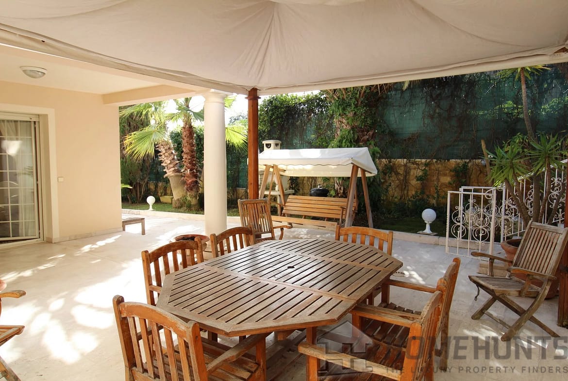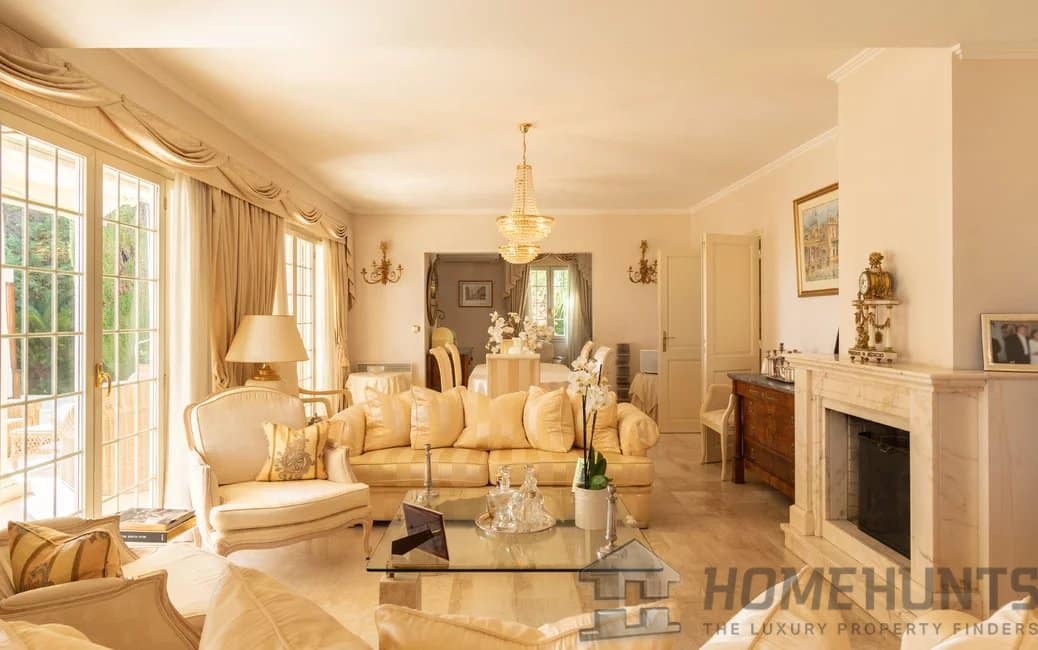 Grand living spaces including a double reception with fireplace, 5 en suite bedrooms, fitted kitchen, lovely dining space, fitness room with jacuzzi and hammam.
