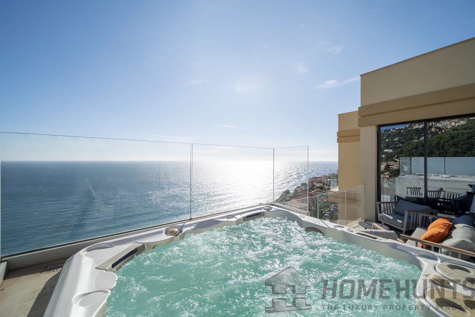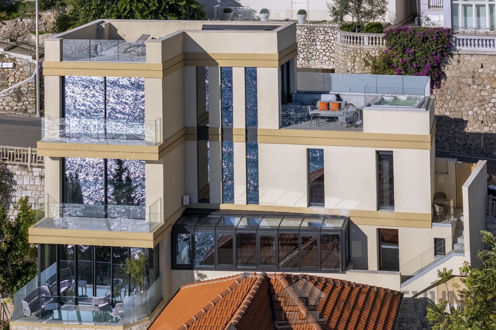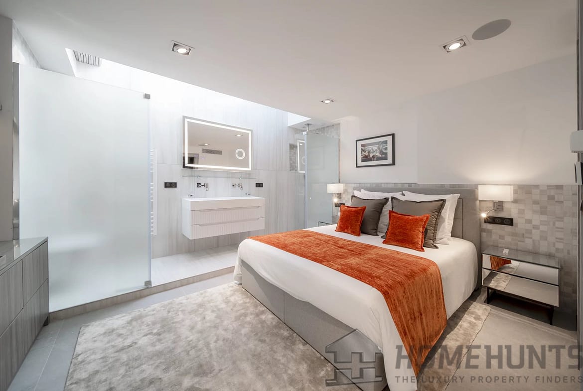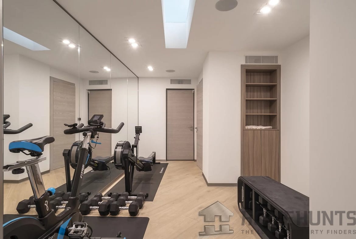 The interiors feature high-quality materials and a refined layout. The home also includes a wellness area with a sauna, hammam, and gym, a laundry room, and a terrace with a jacuzzi to fully enjoy the spectacular views.