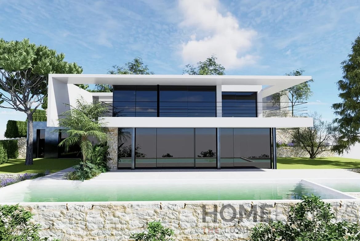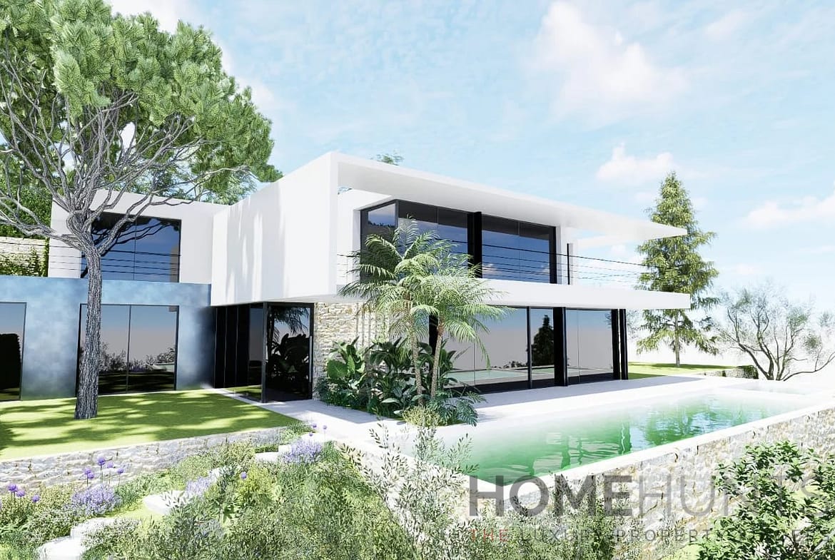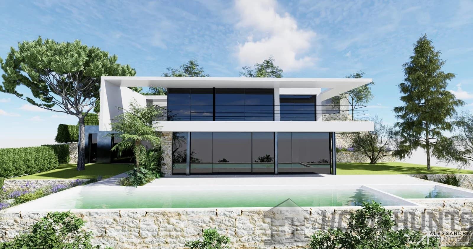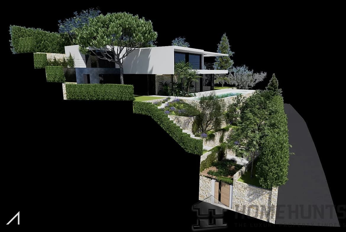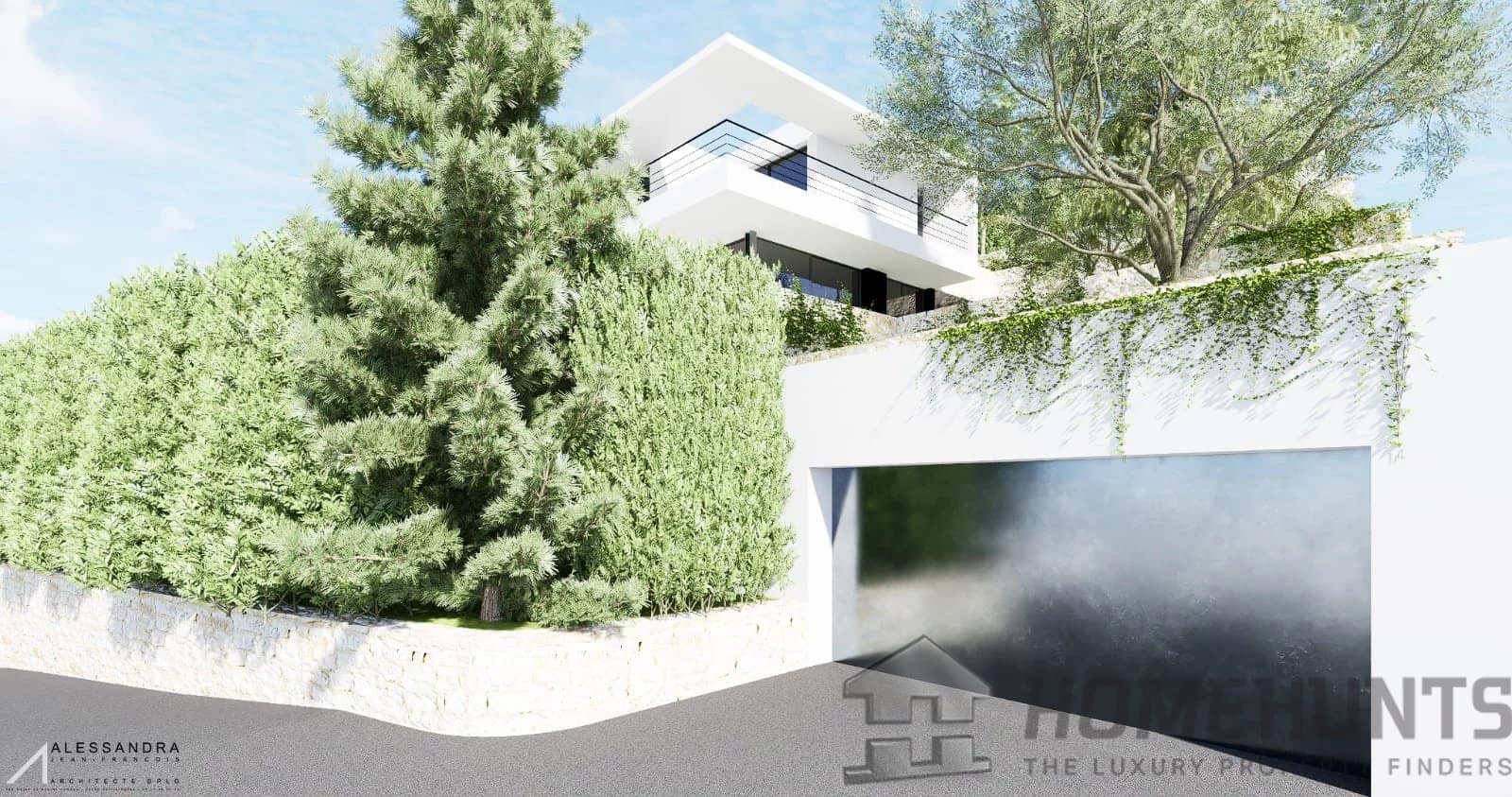 Currently encompassing approximately 250 m2, the site benefits from a granted building permit for a new contemporary villa designed across three levels, all connected by a private elevator: