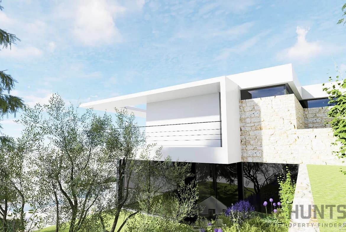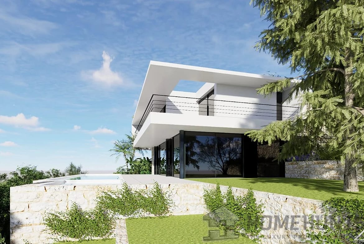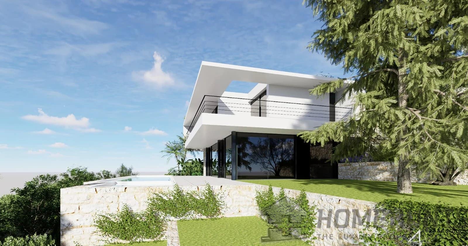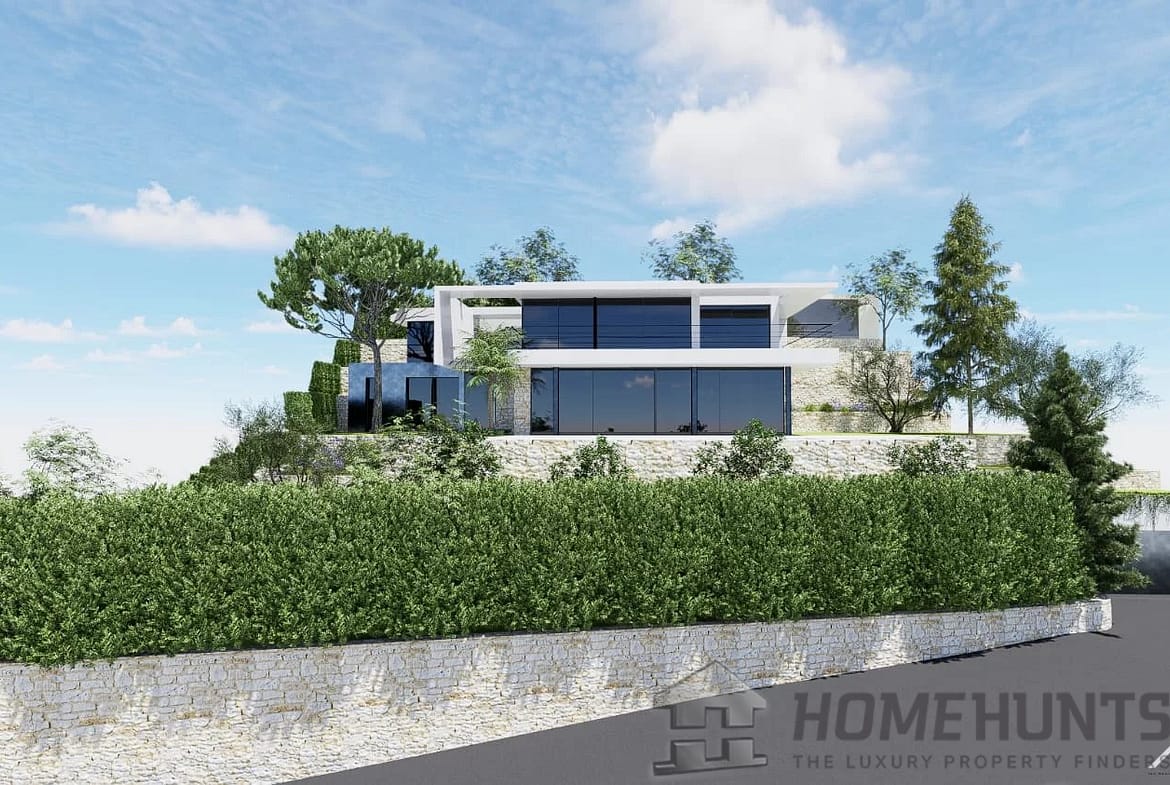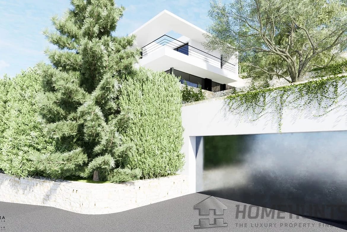 Currently encompassing approximately 250 m2, the site benefits from a granted building permit for a new contemporary villa designed across three levels, all connected by a private elevator: