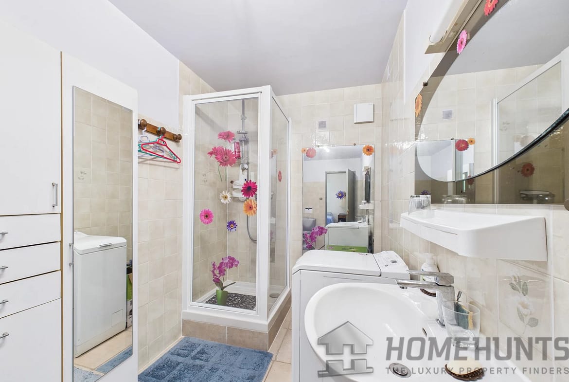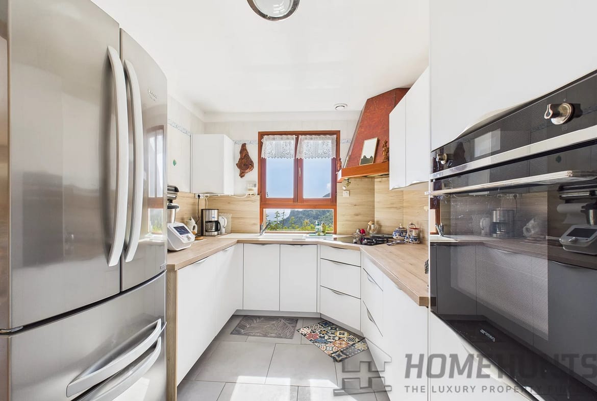 With a living area of 160 m2, the house comprises four bedrooms, two bathrooms with toilet, a bright living room with a large balcony, a separate, fully equipped modern kitchen, a wine cellar and a laundry room.