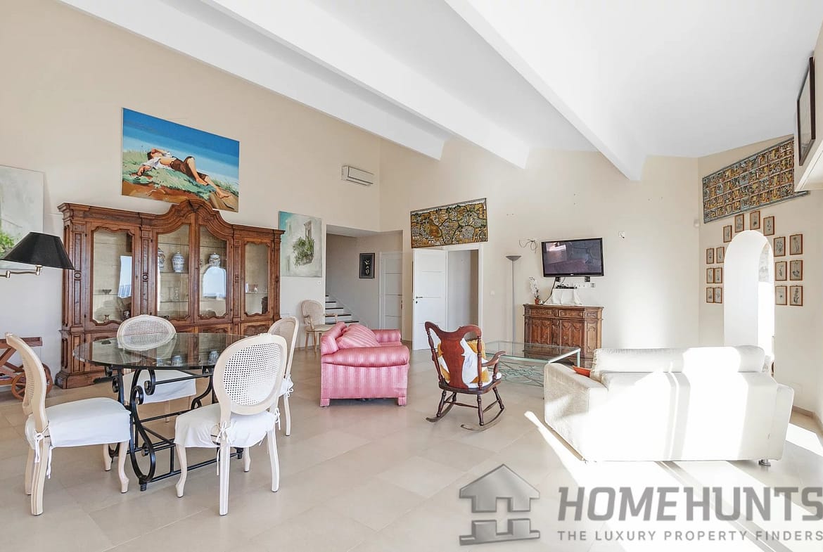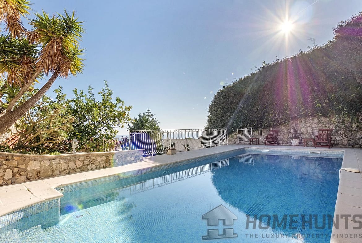 Nestled into the hillside above the Mediterranean glistening blue sea – boasting excellent far reaching views.