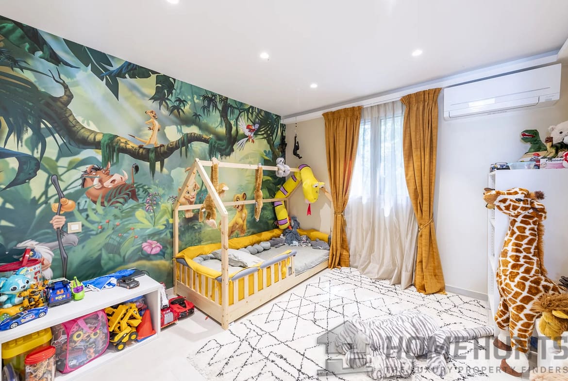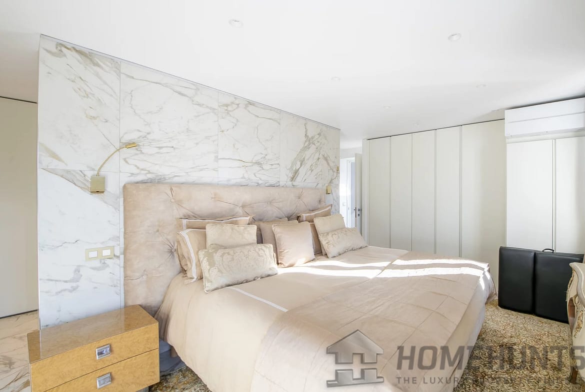 Upstairs, four bedrooms inclusive of a principal suite with a dressing room, Jacuzzi, shower and a south-facing terrace. The other bedrooms share a bathroom with a shower and bathtub.