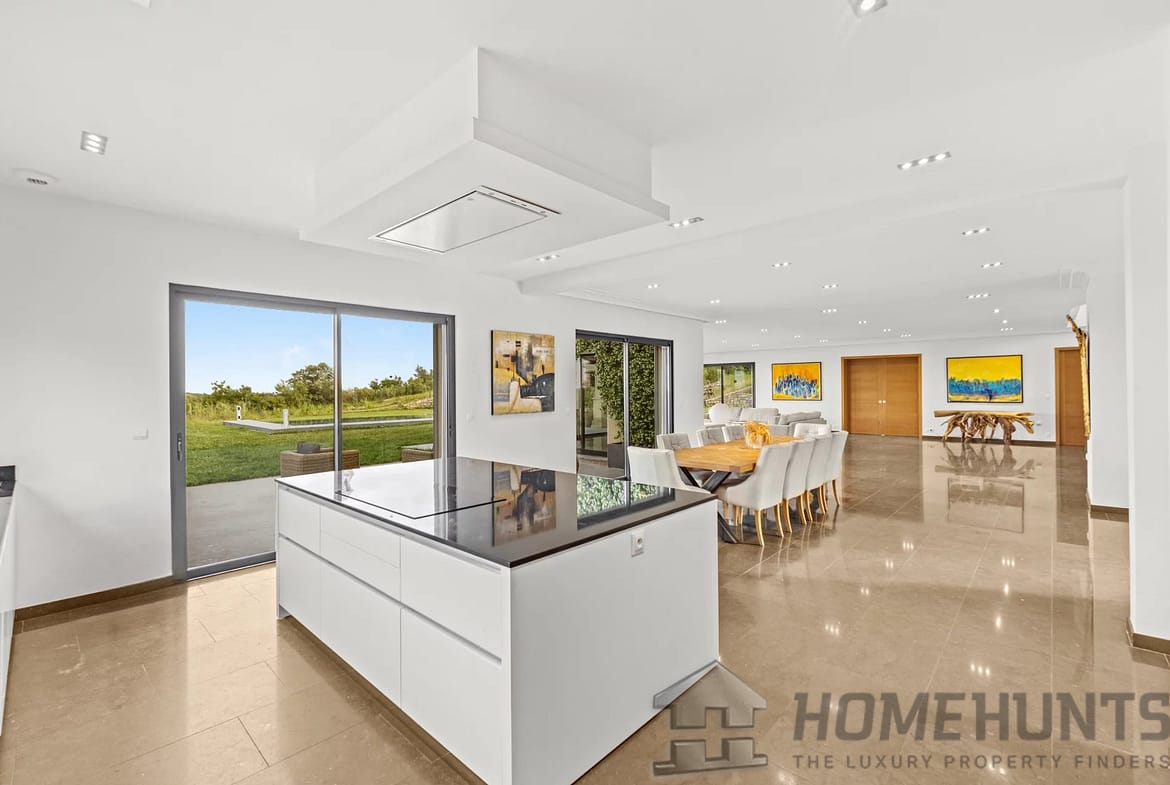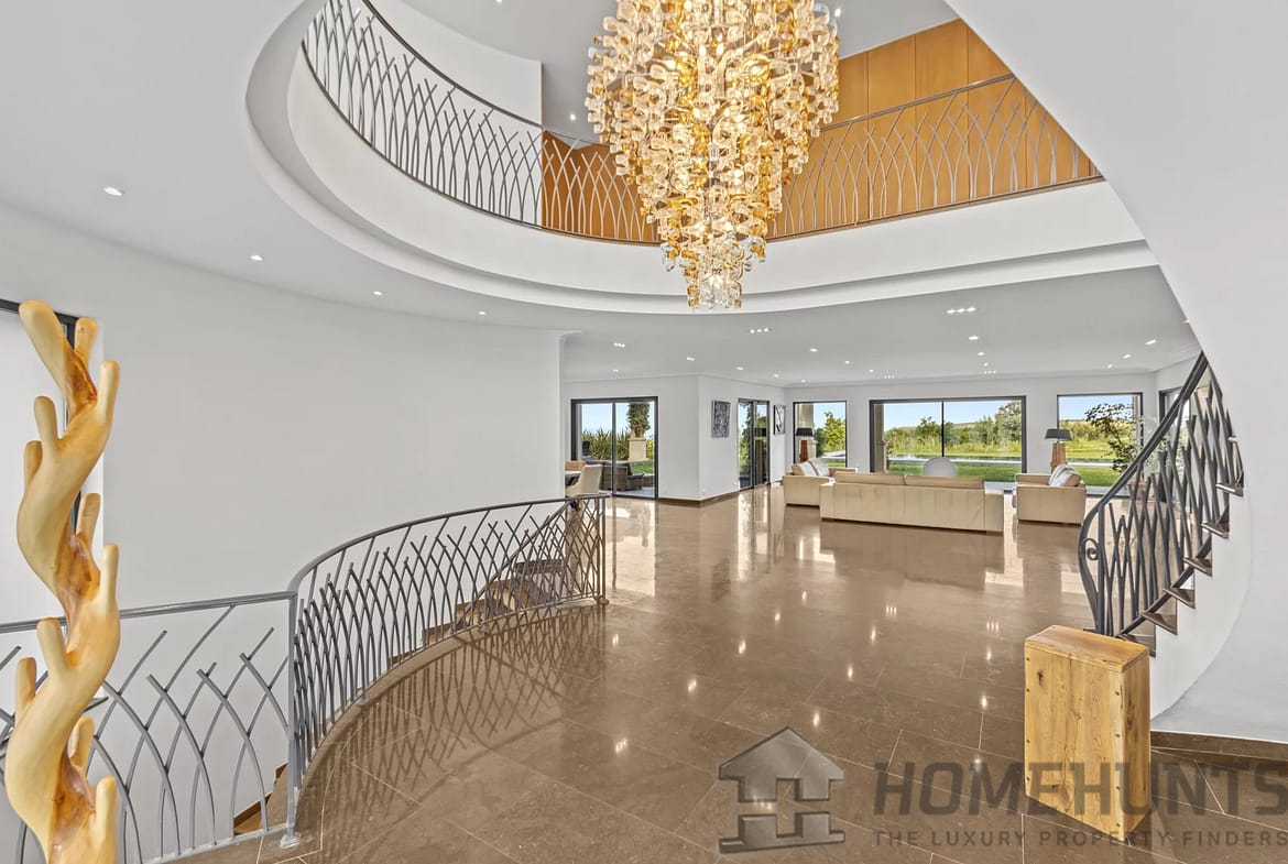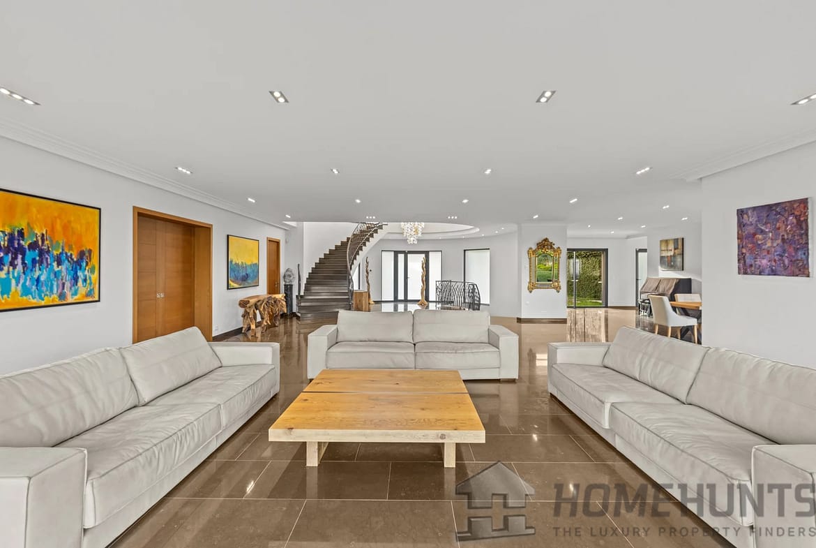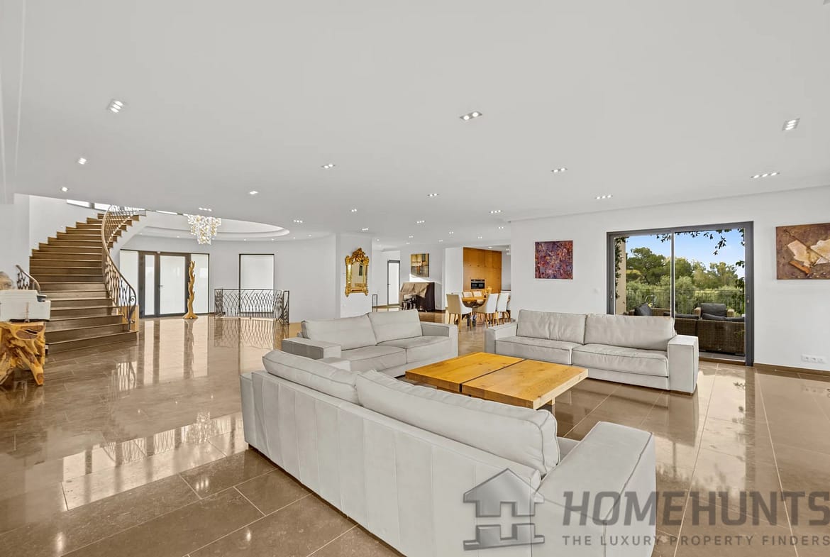 Constructed in 2018 with uncompromising attention to detail, this 570m2 residence exemplifies contemporary luxury living. The interior unfolds with a dramatic double-height entrance hall crowned by a spectacular chandelier, flowing into expansive living spaces featuring floor-to-ceiling windows that frame the breathtaking landscape. The heart of the home seamlessly integrates a sophisticated open-concept kitchen with the main living area, complemented by a separate utility room, intimate media lounge, and four sumptuous en-suite bedrooms, each opening onto private terraces.