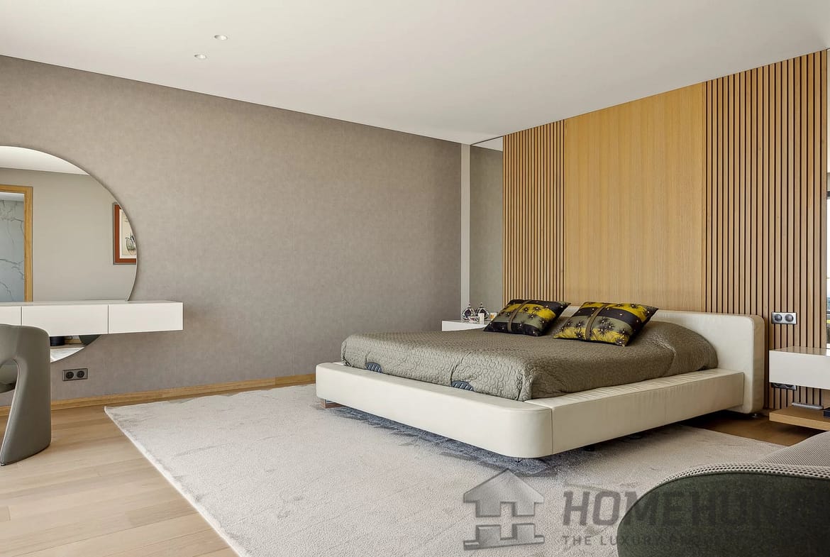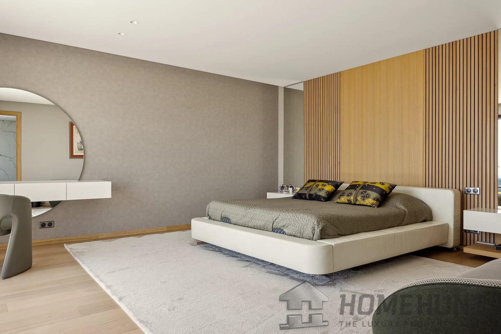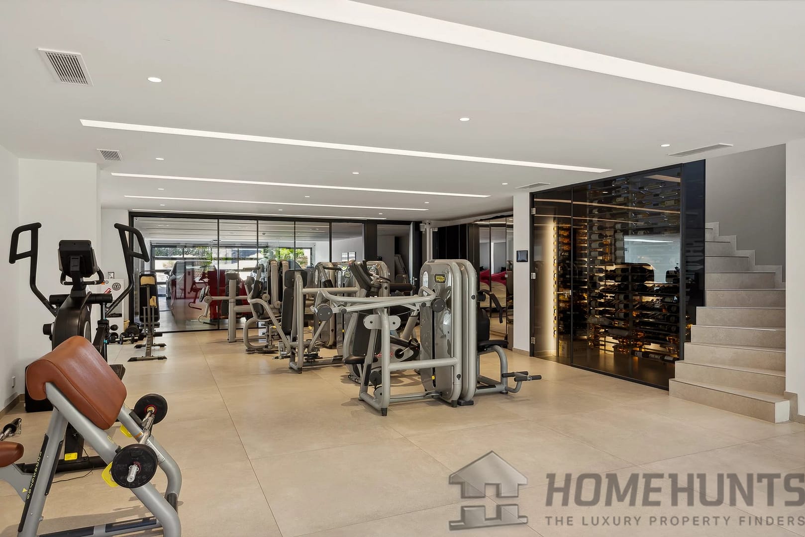 The villa features five en-suite bedrooms, each with a private bathroom or shower, as well as an independent apartment, ensuring comfort and privacy for all residents. Additional amenities include a wine cellar, a gym, and a billiard area with a dedicated lounge.