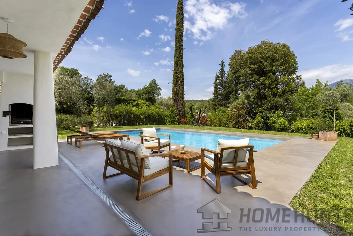 Outside, a beautifully landscaped garden of around 3,000 m2, adorned with century-old olive trees and Mediterranean species, surrounds a delightful swimming pool, creating the perfect haven for relaxation.