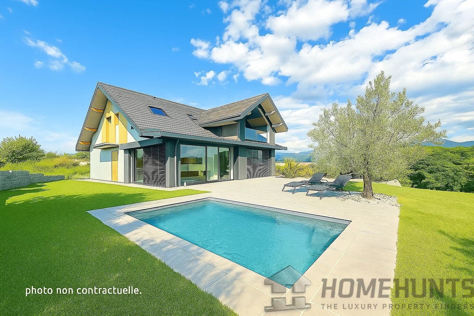 Beautiful contemporary house located in the heights of Rumilly, just 25 minutes from Annecy, in a quiet residential area with open views over agricultural land.