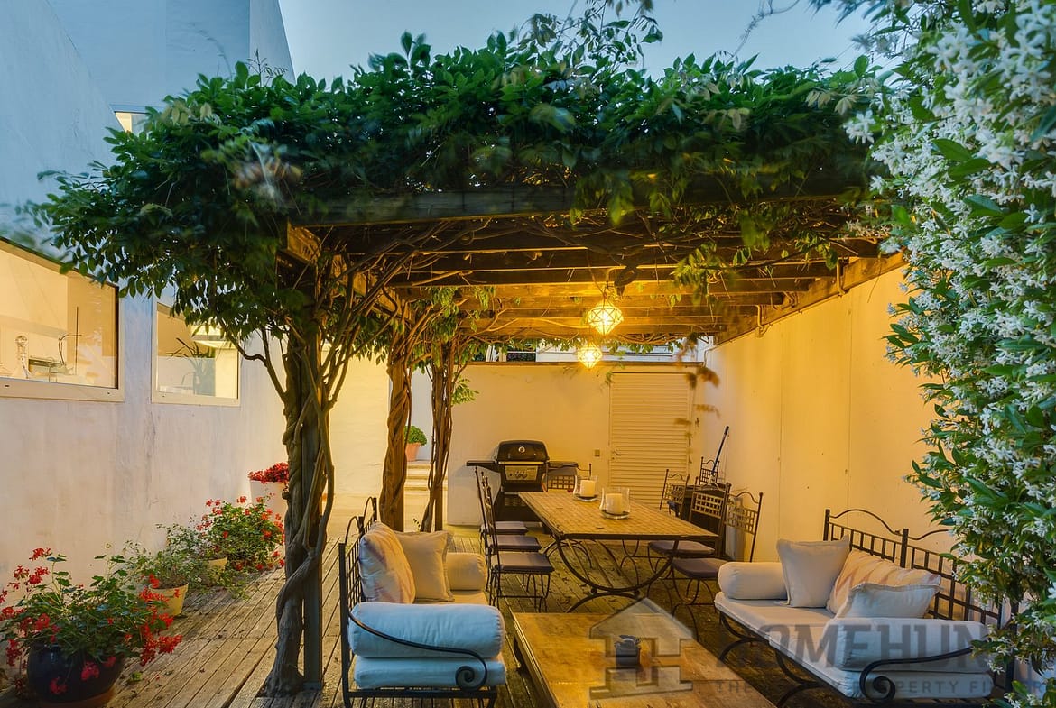On the first floor there is a living-dining room with a fireplace, a well-equipped kitchen, a deluxe bedroom with a bathroom with a shower, a toilet. There are exits from the living room, bedroom and kitchen to the garden, to the pool and to the terrace covered with wisteria. B-B-Q. Utility room.