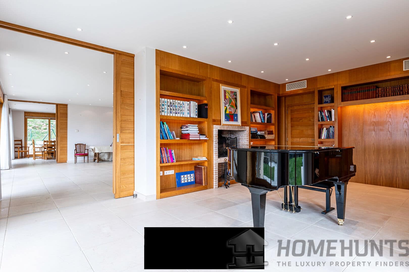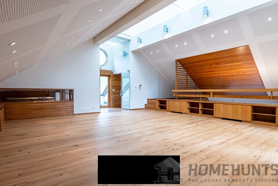 The basement houses a cinema room, a music room, a wine cellar, and a photography lab, along with an underground garage accessible via a tunnel.