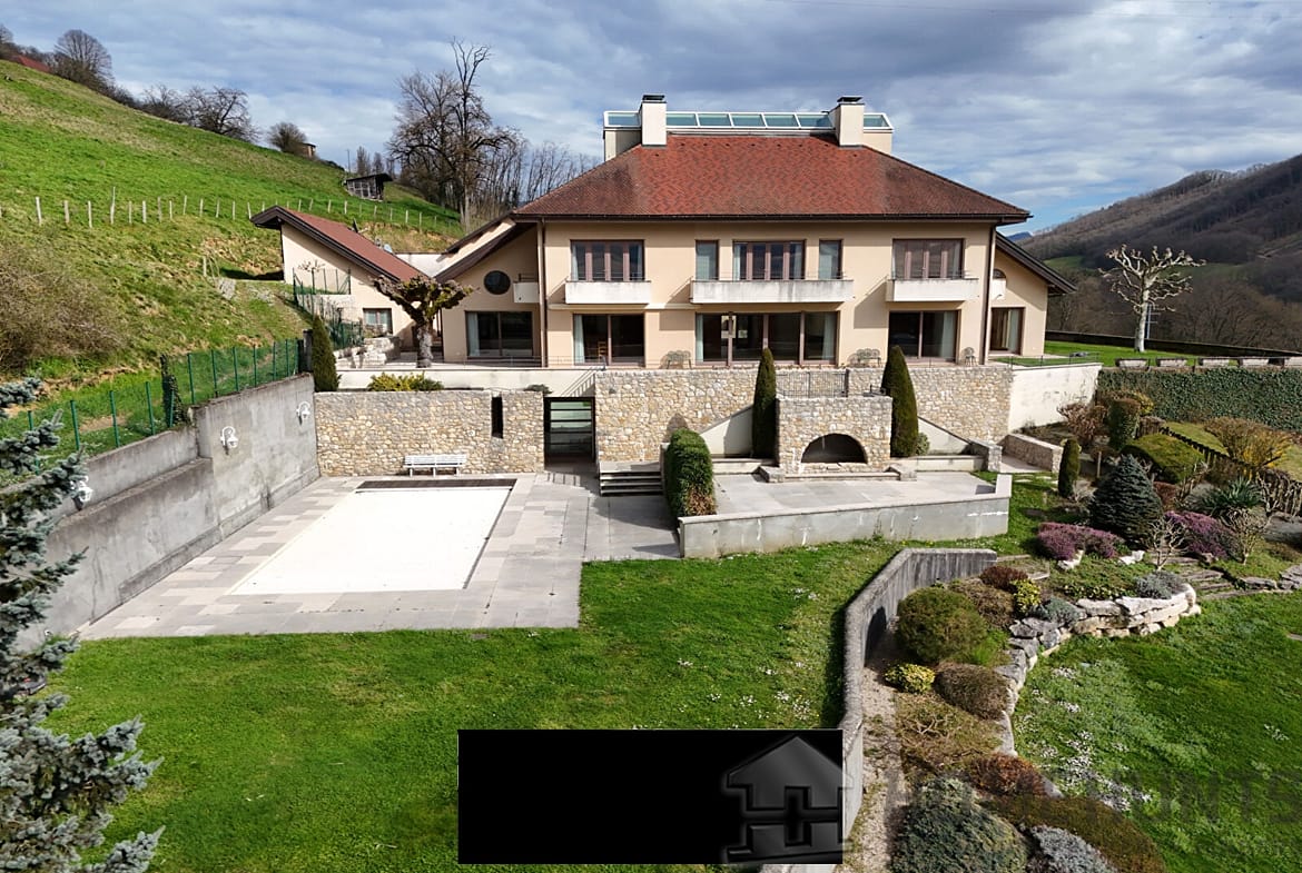 Nestled in a preserved environment near Saint-Genix-sur-Guiers, this architect-designed property of approximately 600 m2² blends harmoniously into a private estate of about 4.5 hectares.