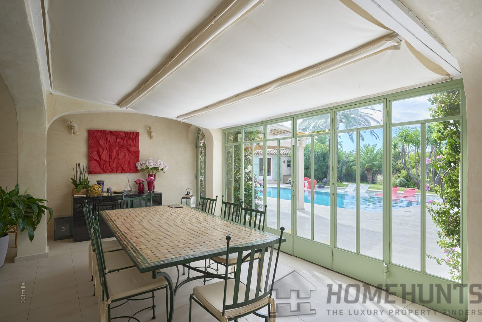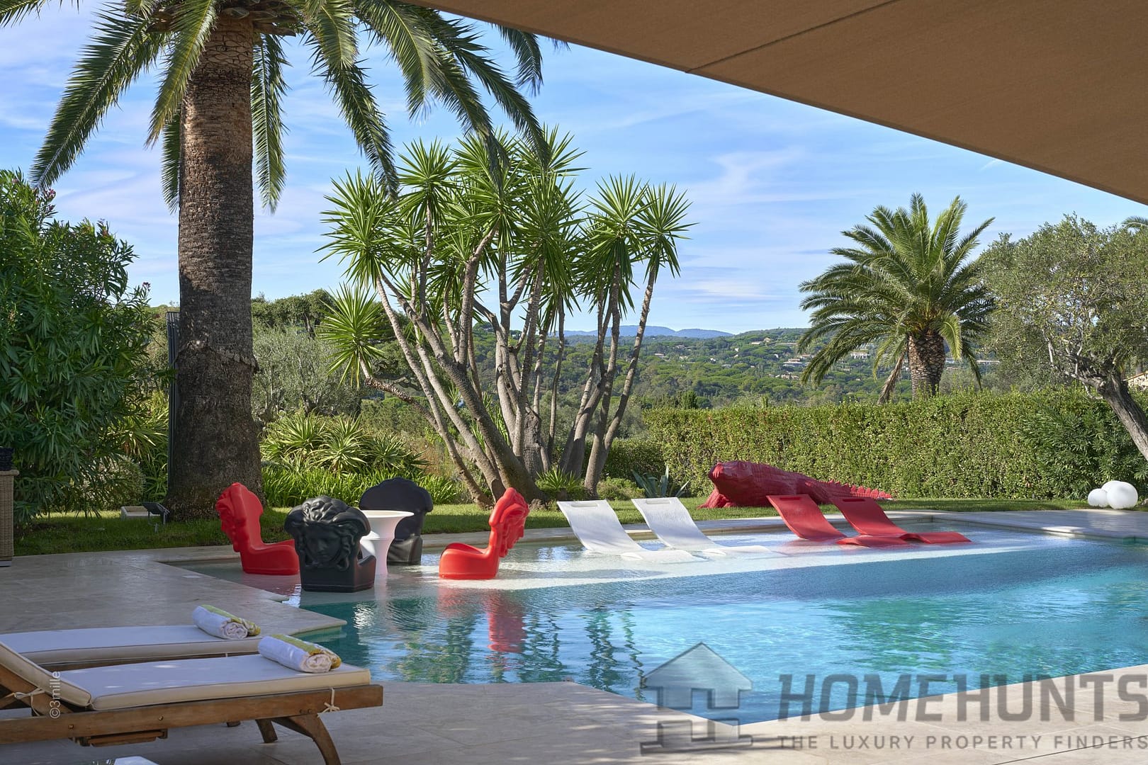 A place of tranquility where the space extends with a panoramic view of the country landscapes, and in the immediate proximity of the renowned Parcs of Saint-Tropez domain.
