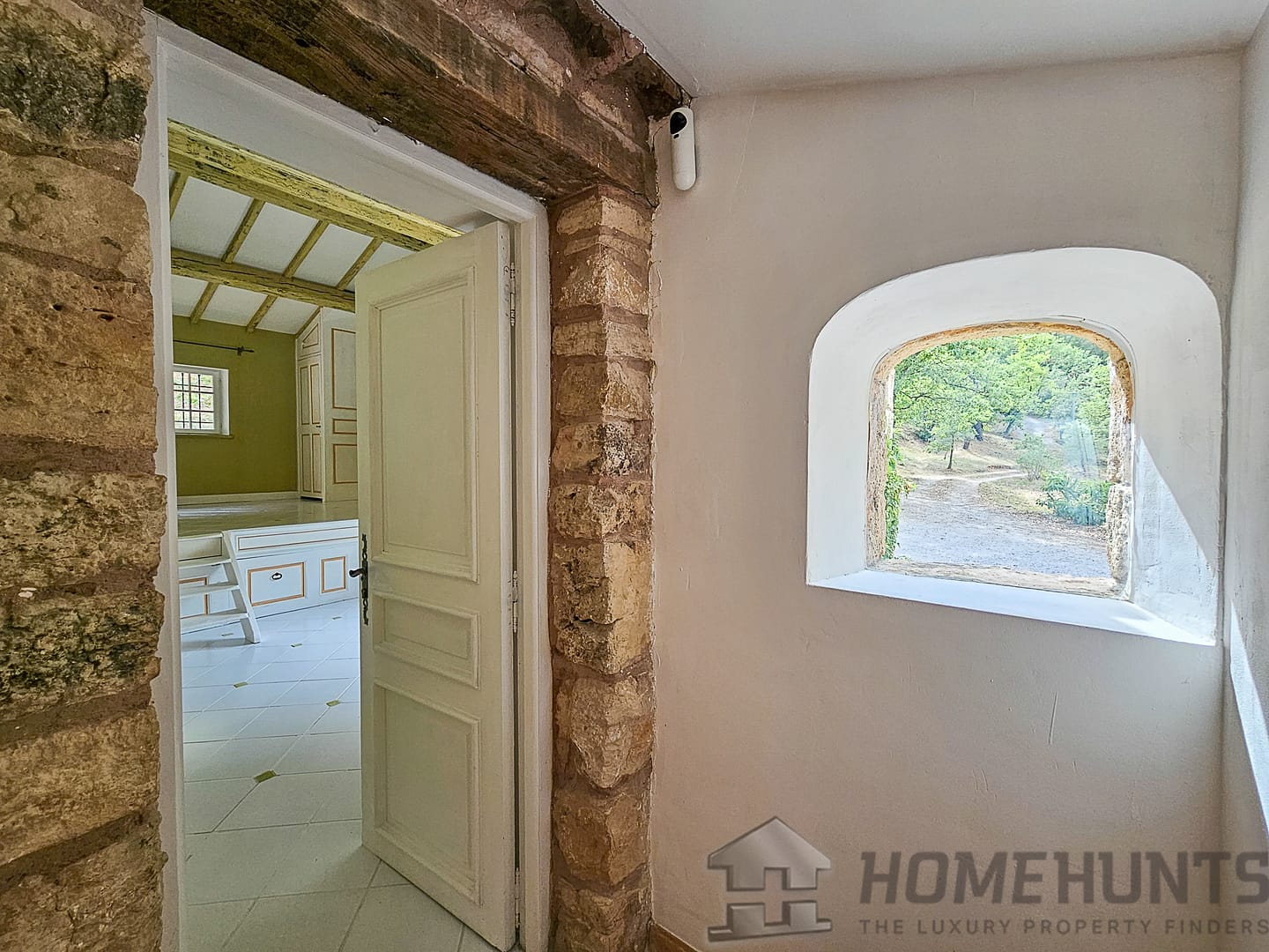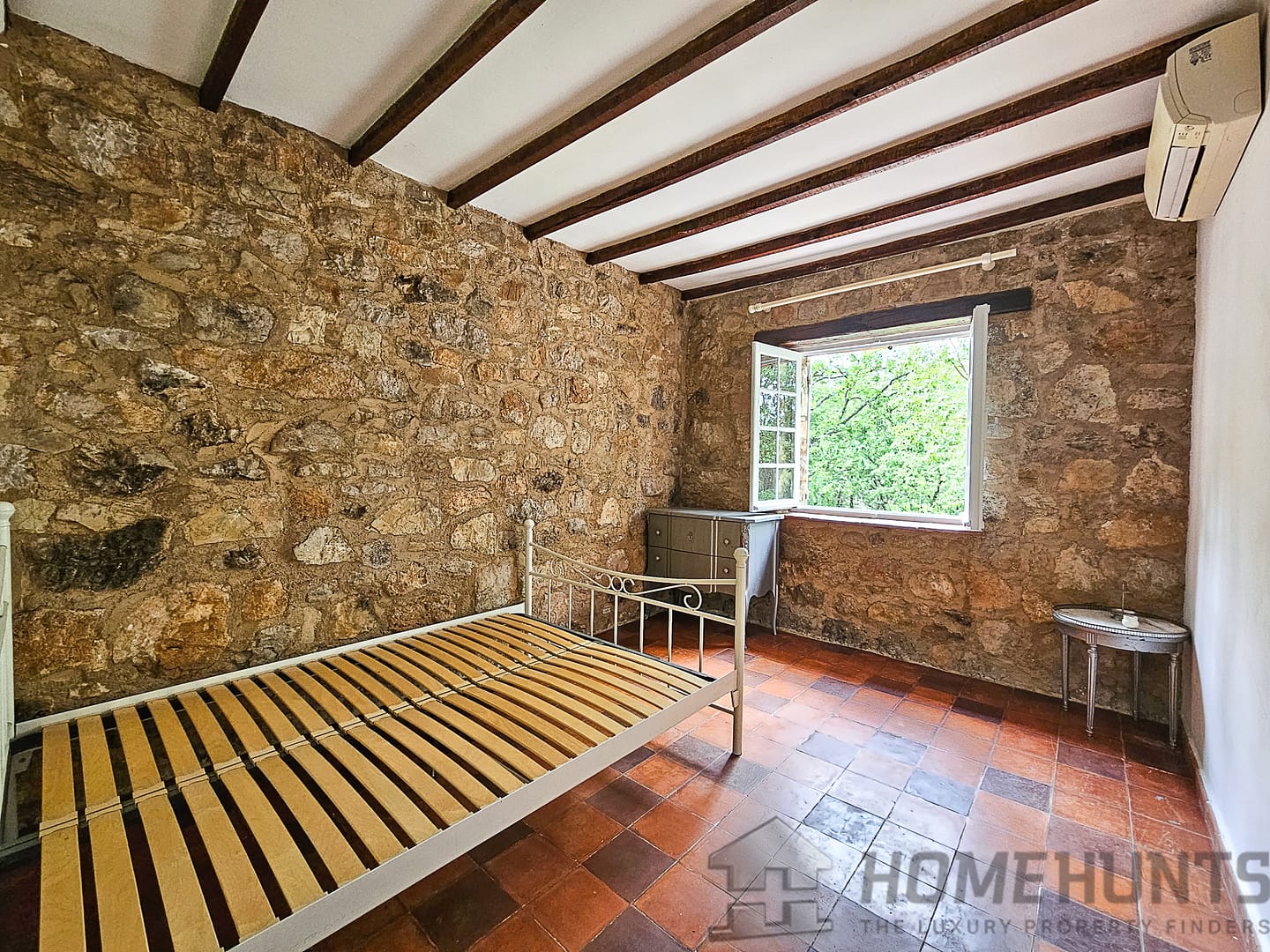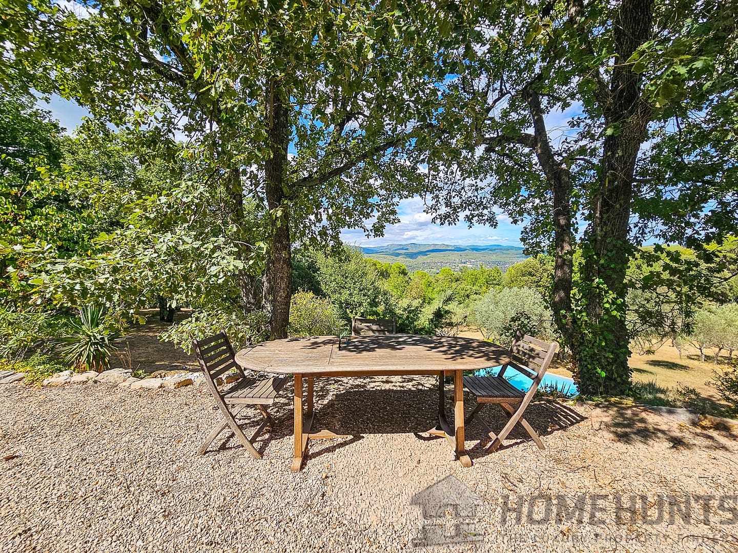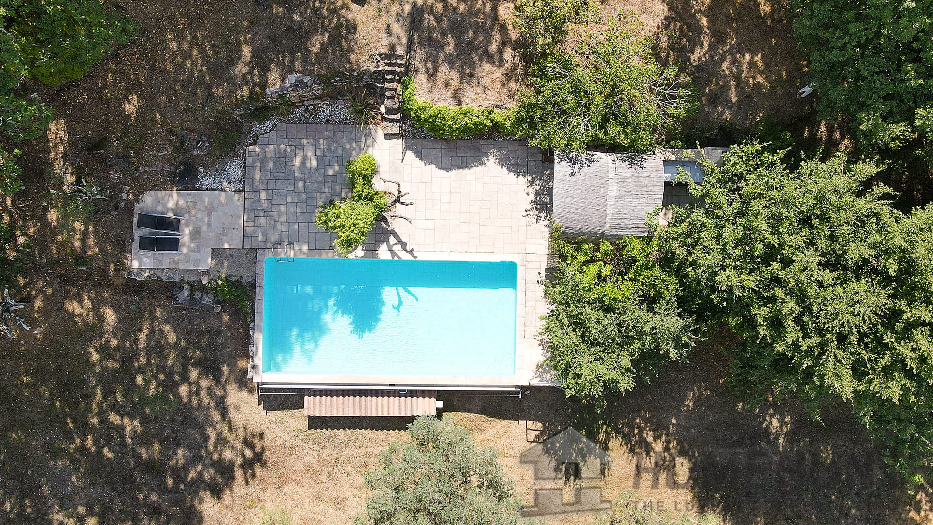 Outside, a swimming pool overlooks the olive grove and offers breathtaking views, while a 40 m2 garage, a workshop, a storeroom, and a small 12 m2 sheepfold complete the outbuildings. A borehole ensures water self-sufficiency, with the option of connection to the public network.